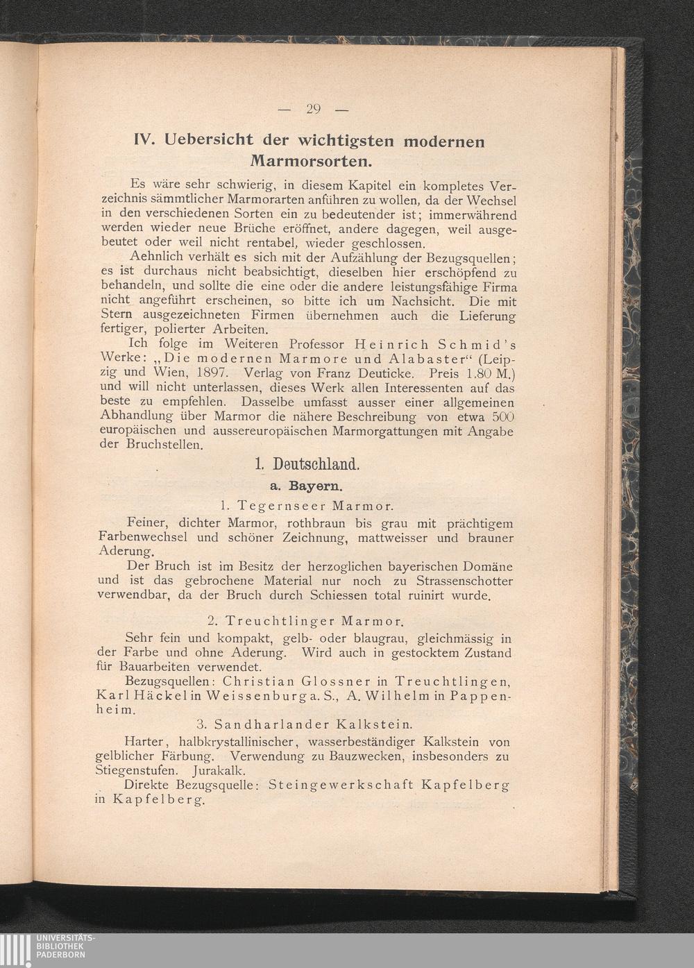 IV. Uebersicht der wichtigsten modernen Marmorsorten.