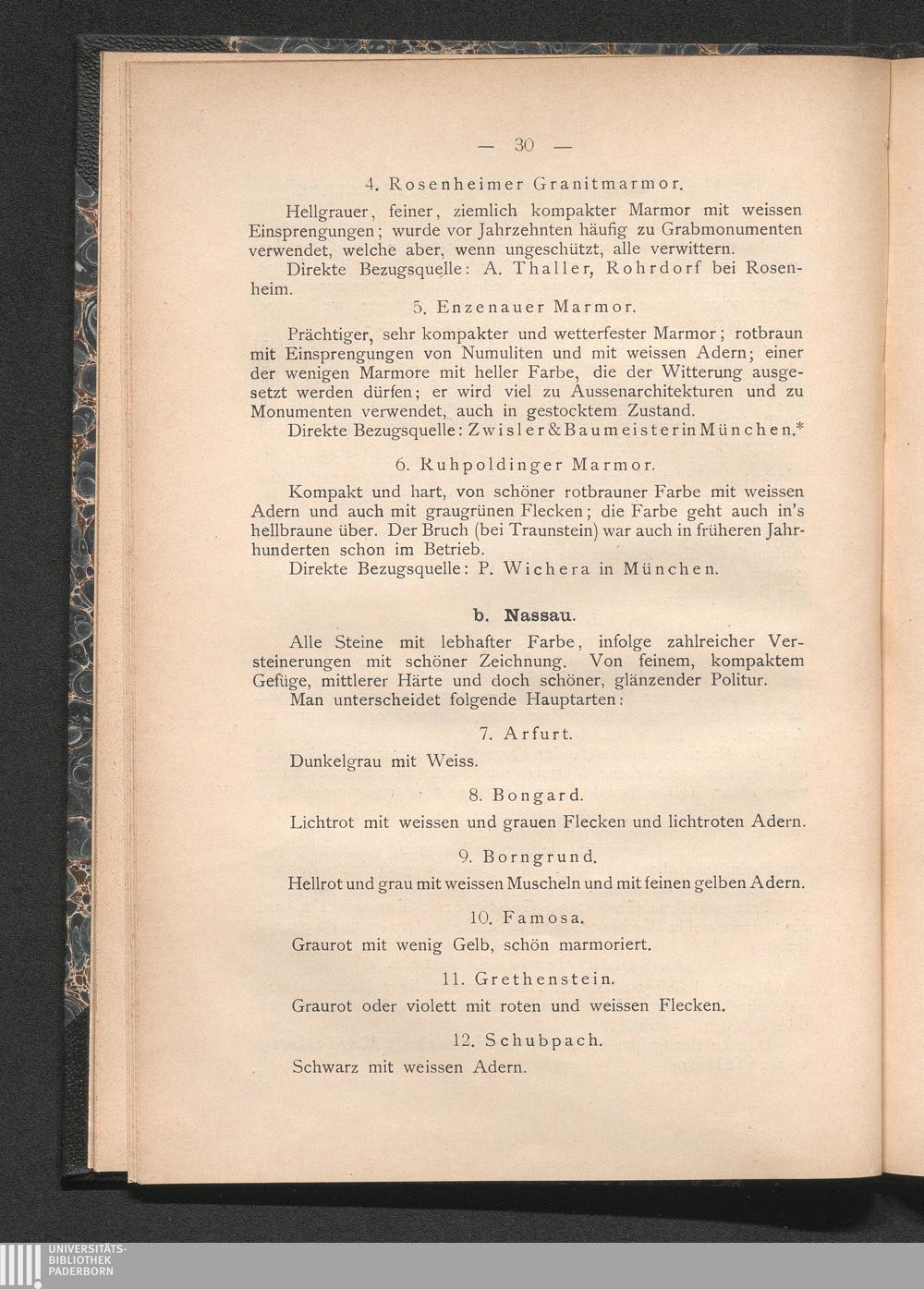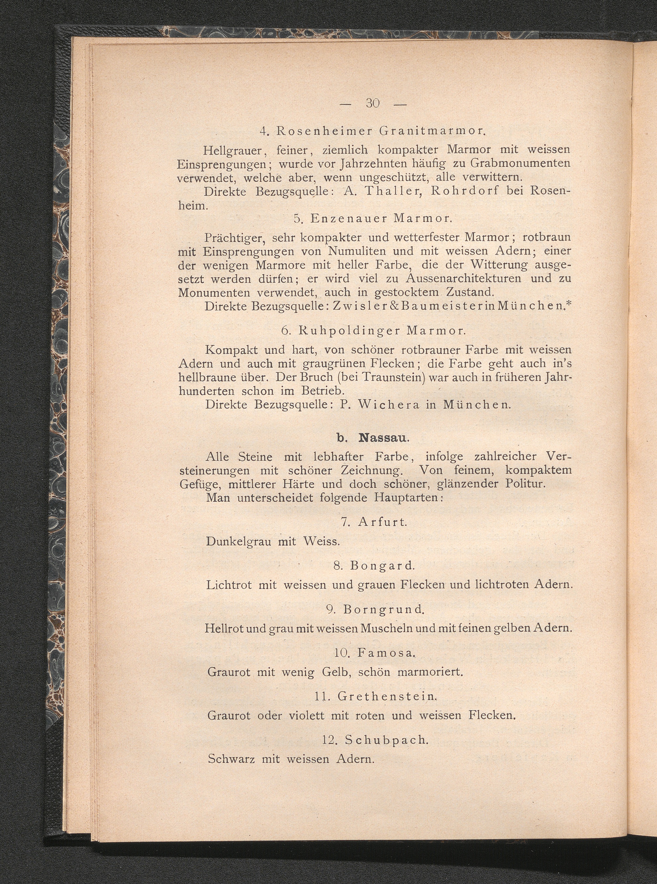 IV. Uebersicht der wichtigsten modernen Marmorsorten.