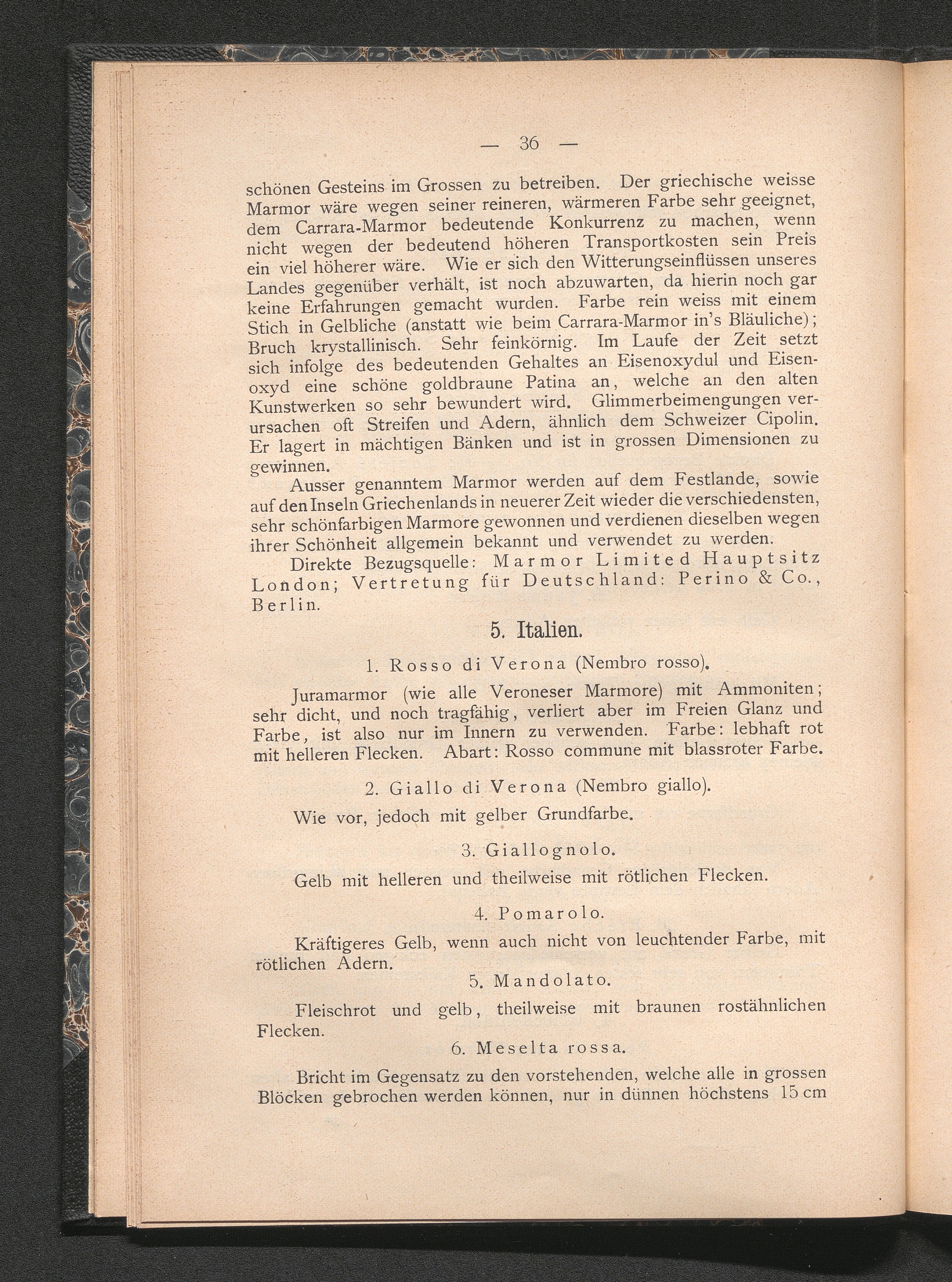 IV. Uebersicht der wichtigsten modernen Marmorsorten.