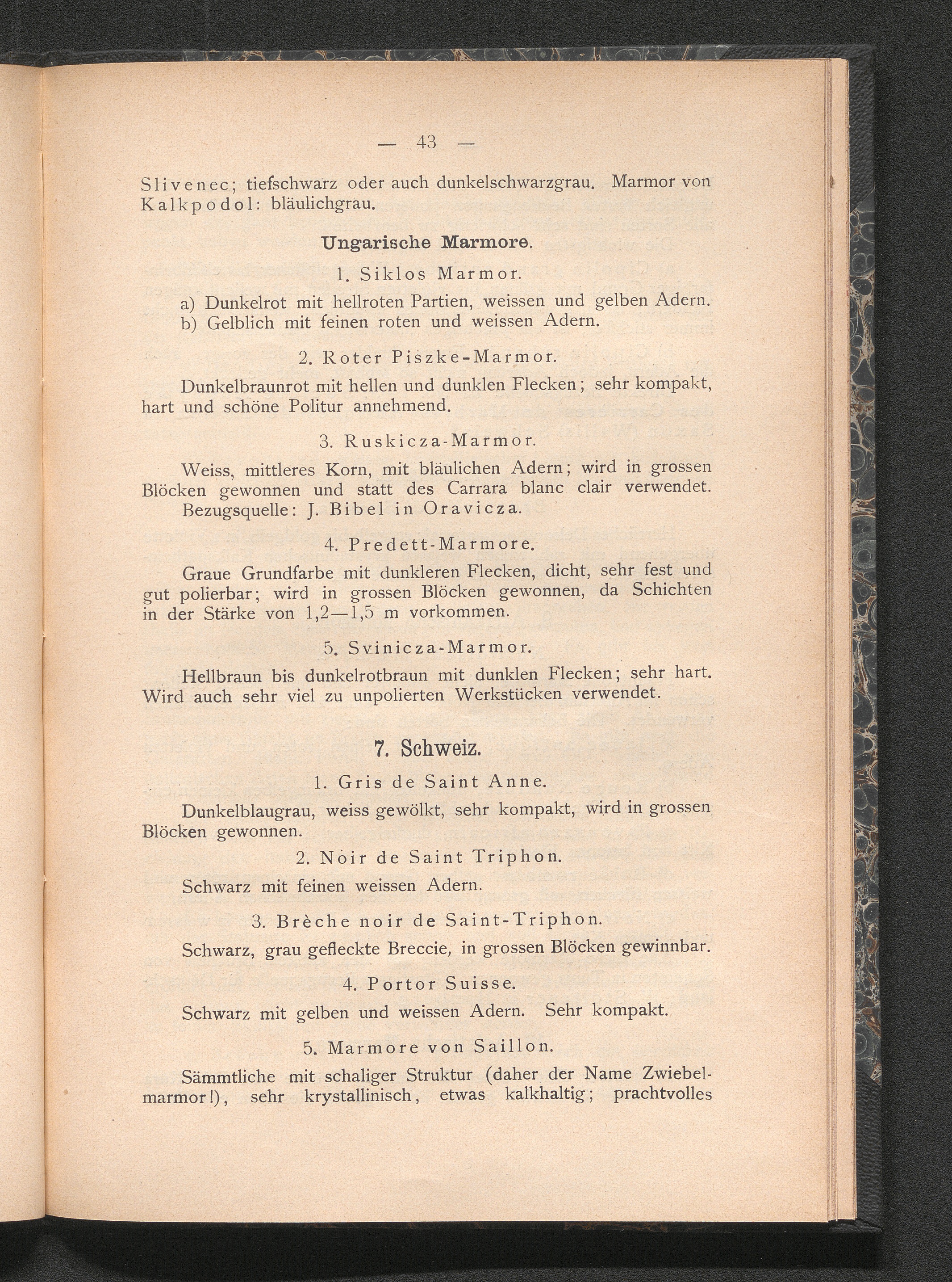 IV. Uebersicht der wichtigsten modernen Marmorsorten.