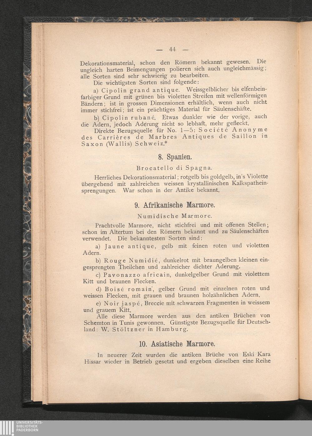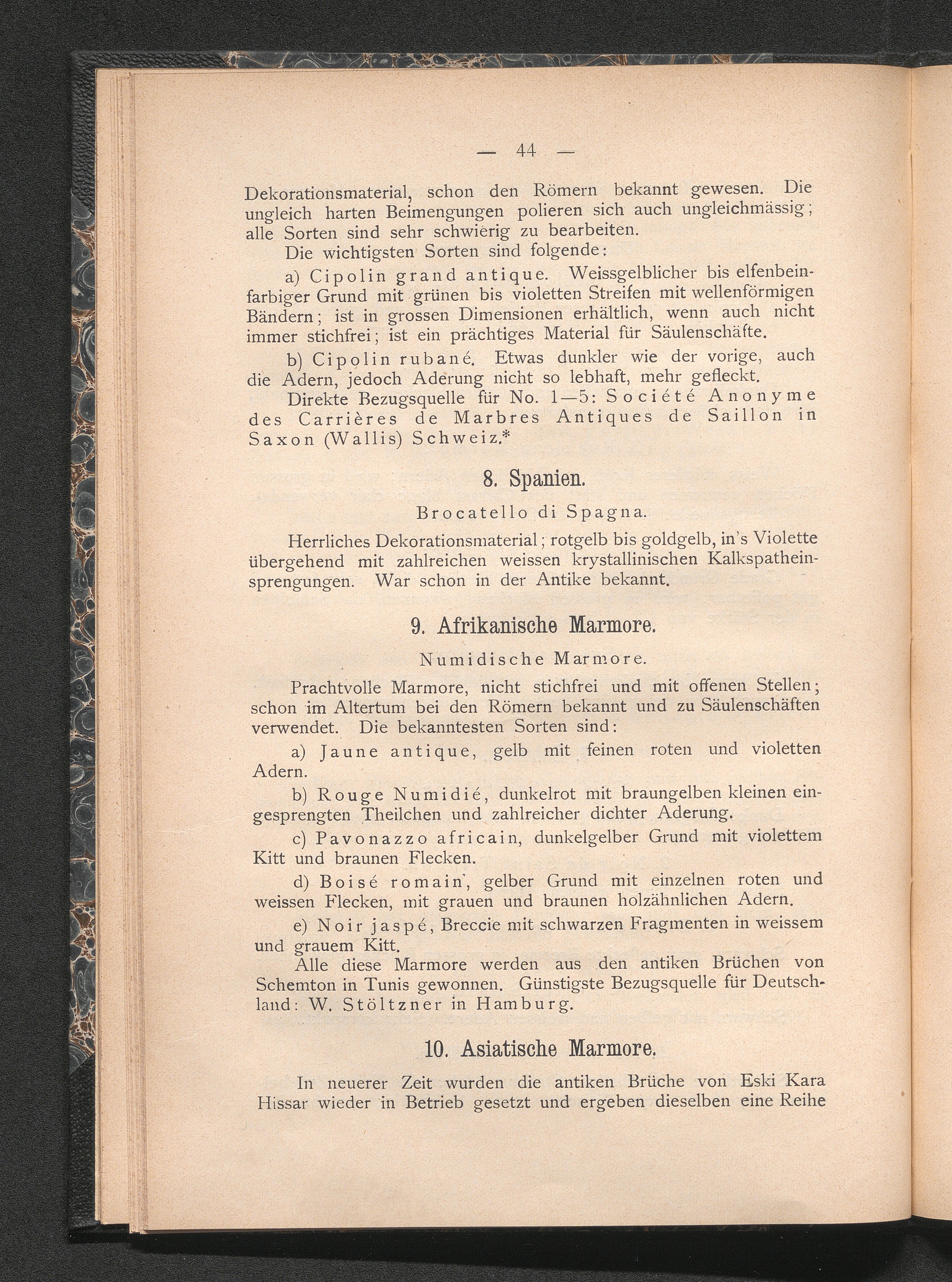 IV. Uebersicht der wichtigsten modernen Marmorsorten.
