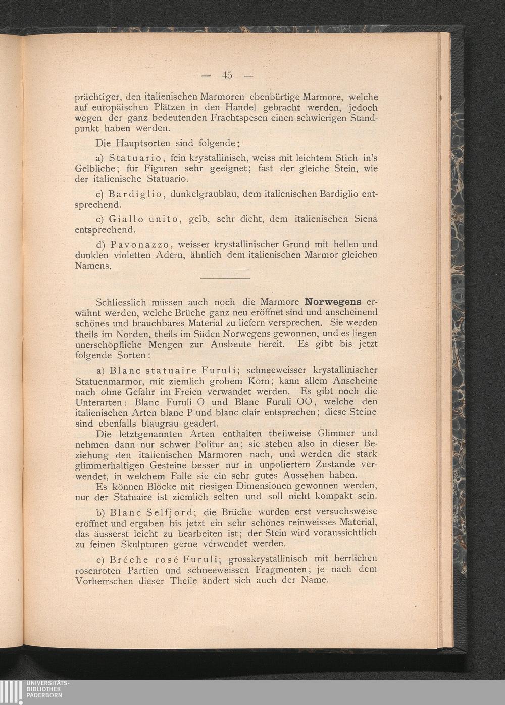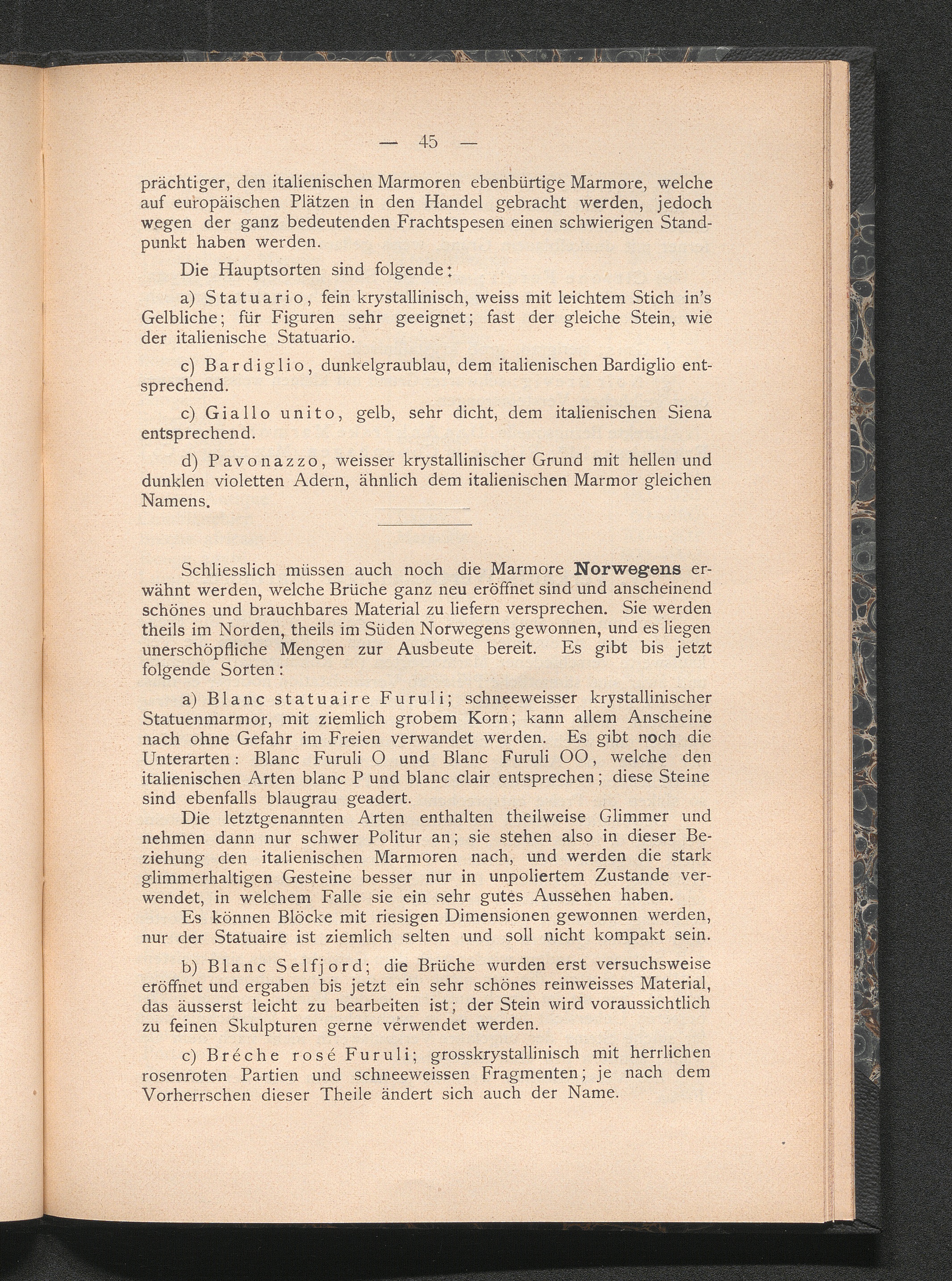 IV. Uebersicht der wichtigsten modernen Marmorsorten.