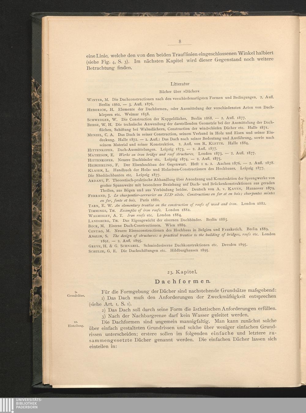 22. Kap. Dächer im allgemeinen.