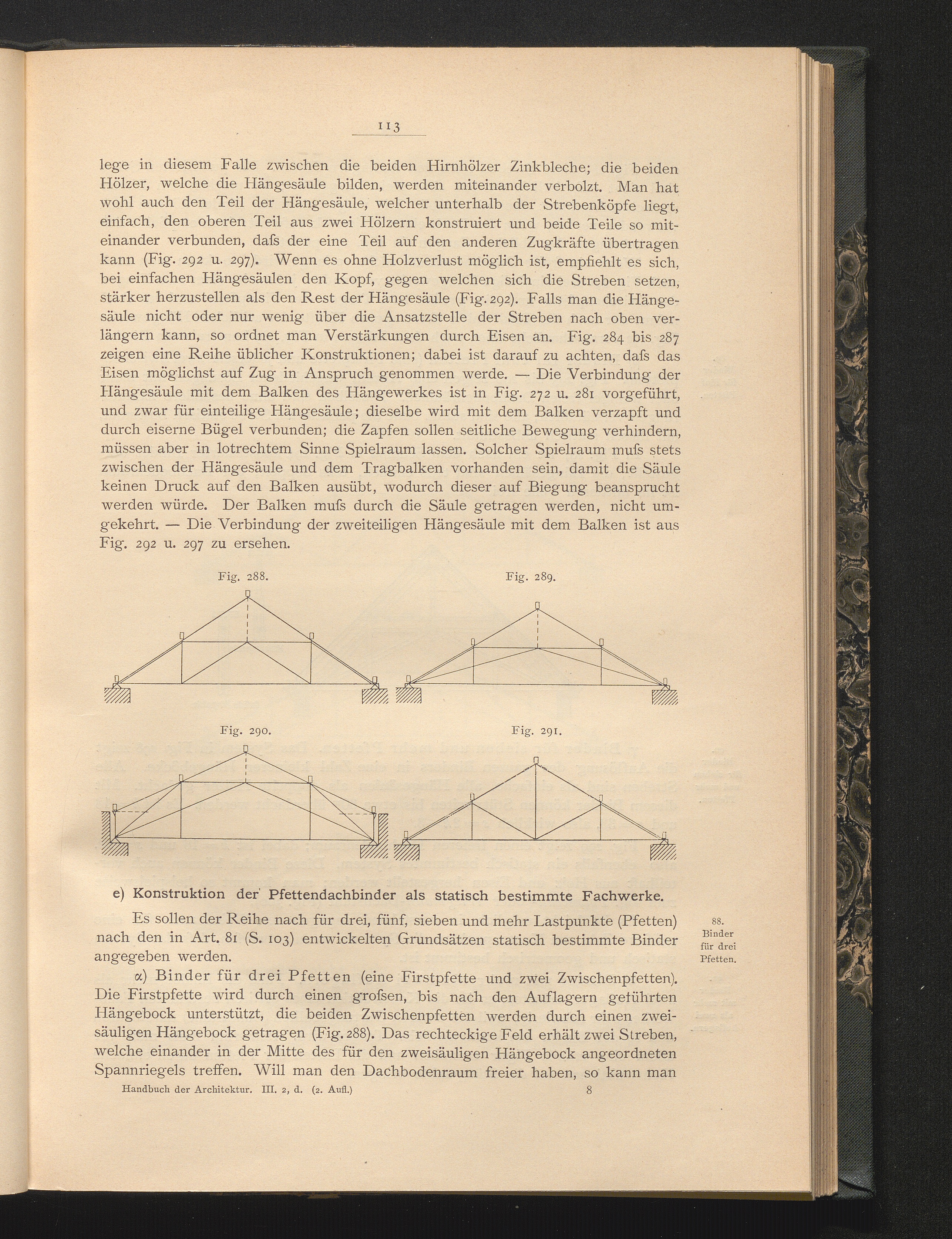 e) Konstruktion der Pfettendachbinder als statisch bestimmte Fachwerke.