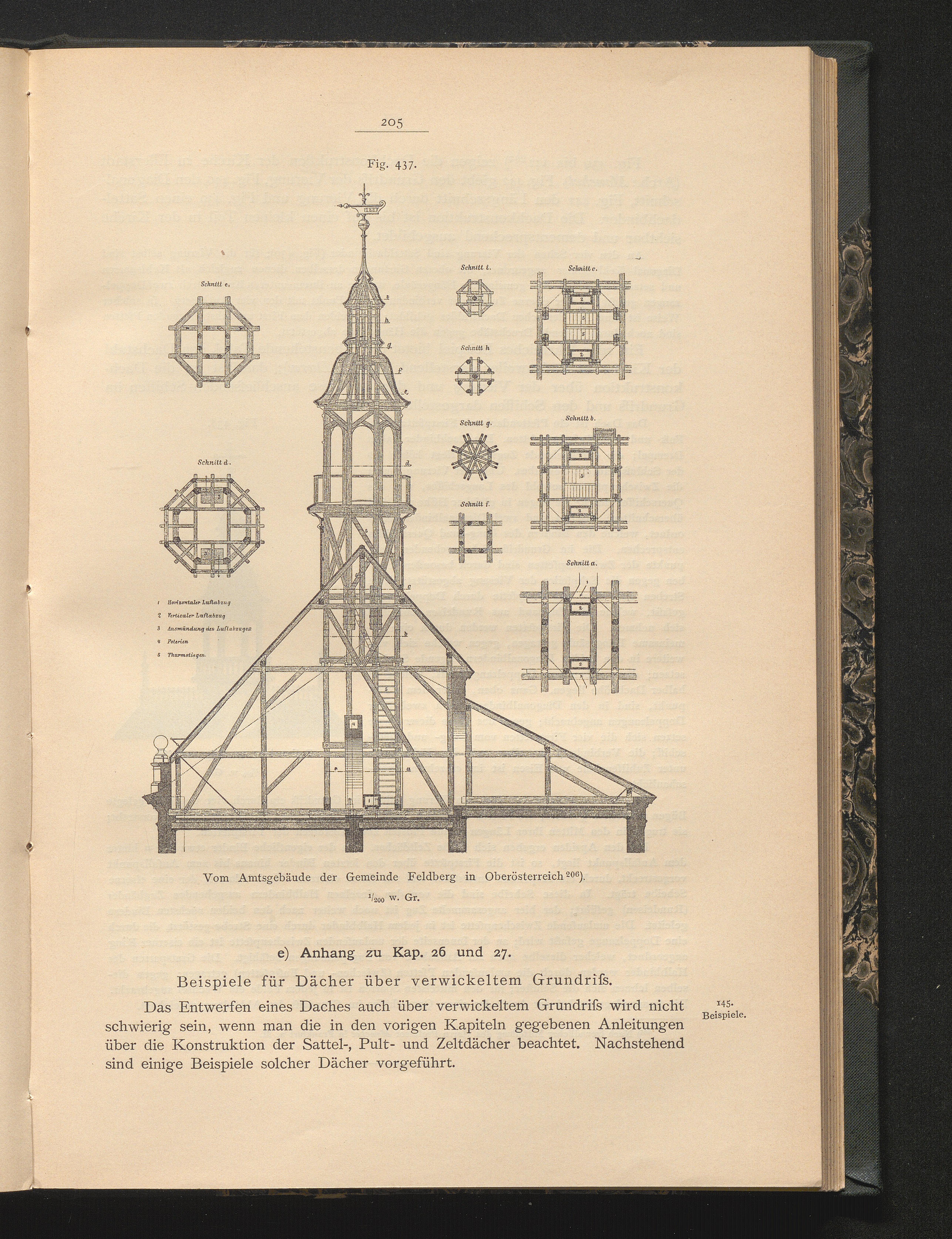 e) Anhang zu Kap. 26 und 27. : Beispiele für Dächer über verwickeltem Grundriss.