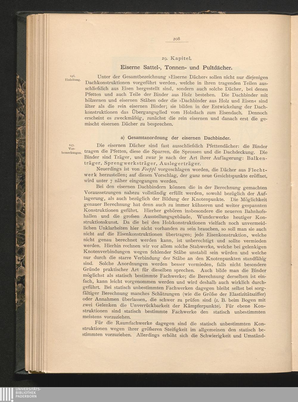 29. Kap. Eiserne Sattel-, Tonnen und Pultdächer.