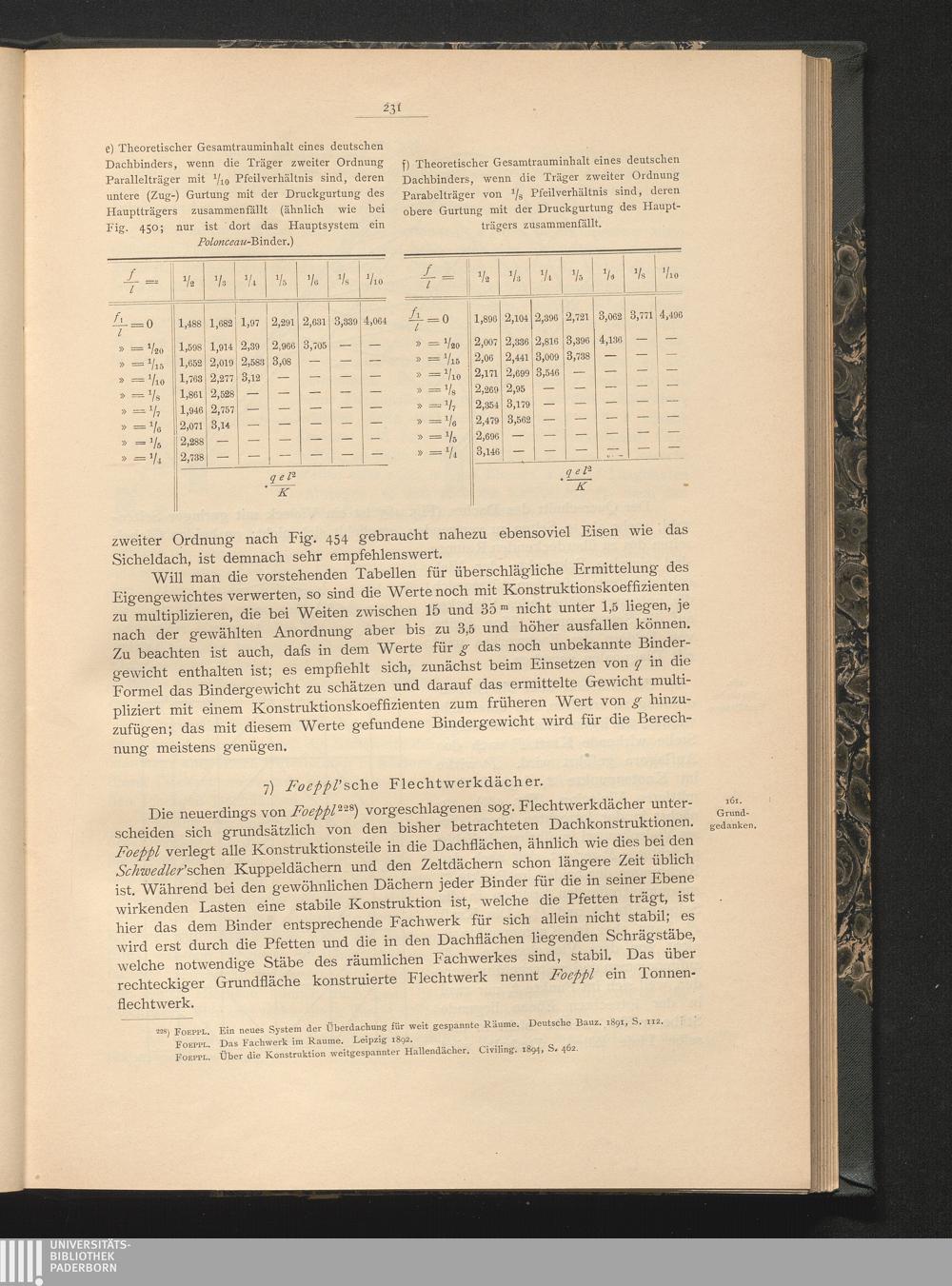7) Foeppl'sche Flechtwerkdächer.