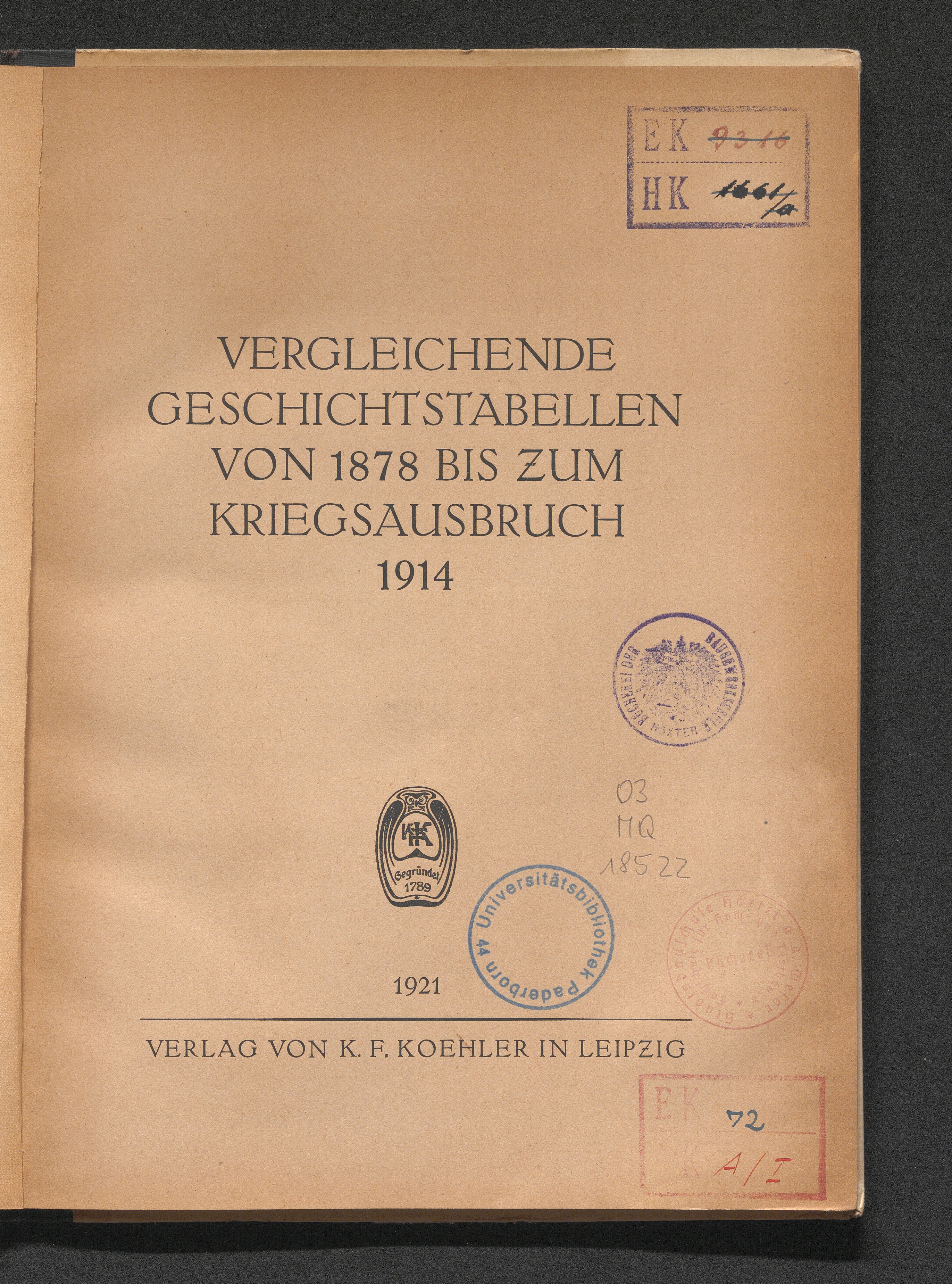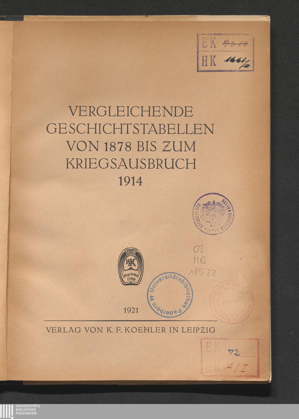 Vergleichende Geschichtstabellen von 1878 bis zum Kriegsausbruch 1914