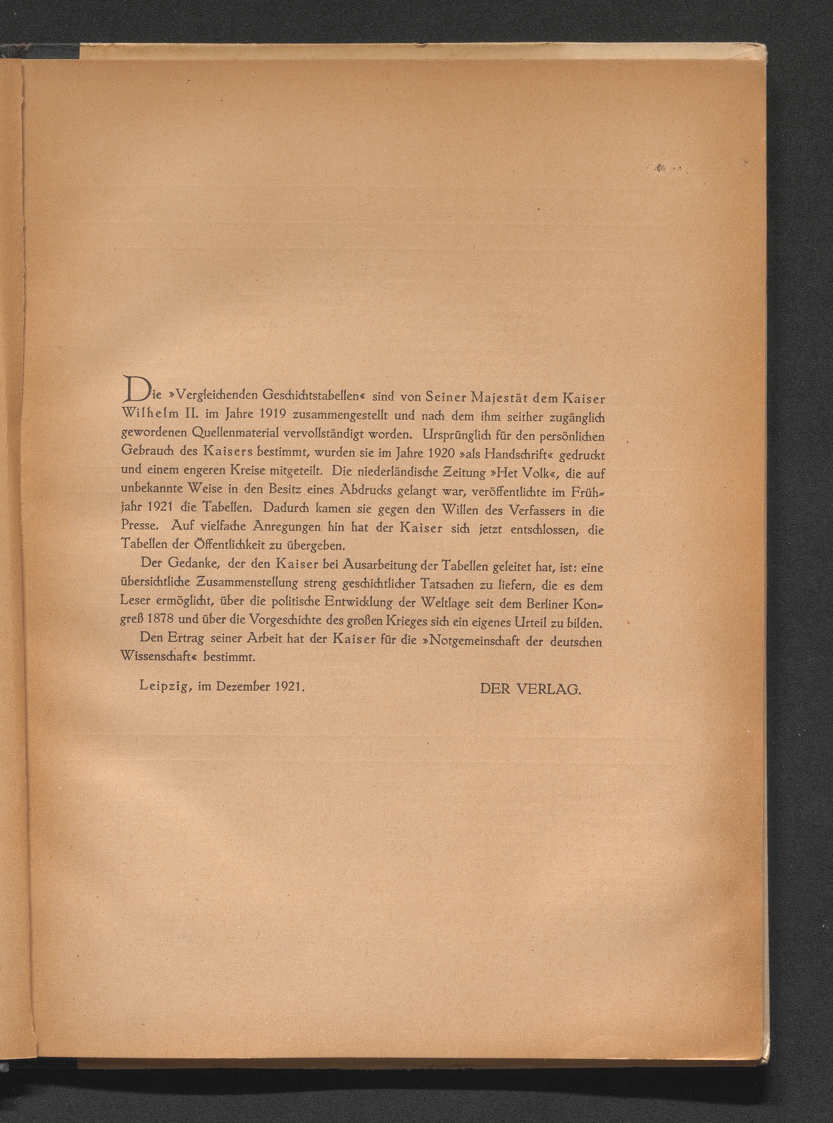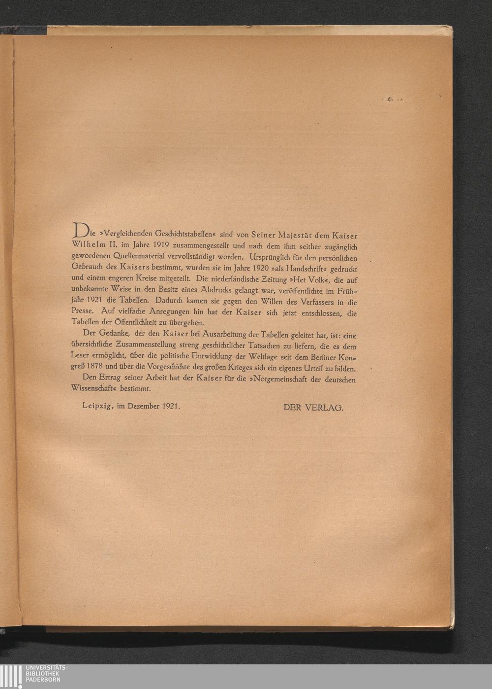 Vergleichende Geschichtstabellen von 1878 bis zum Kriegsausbruch 1914 / [... von seiner Majestät dem Kaiser Wilhelm II. ... zsgest. und vervollst.]