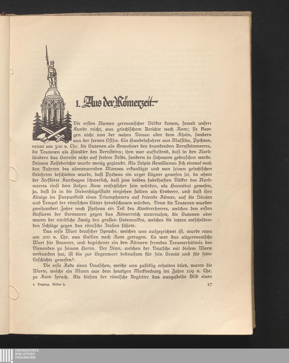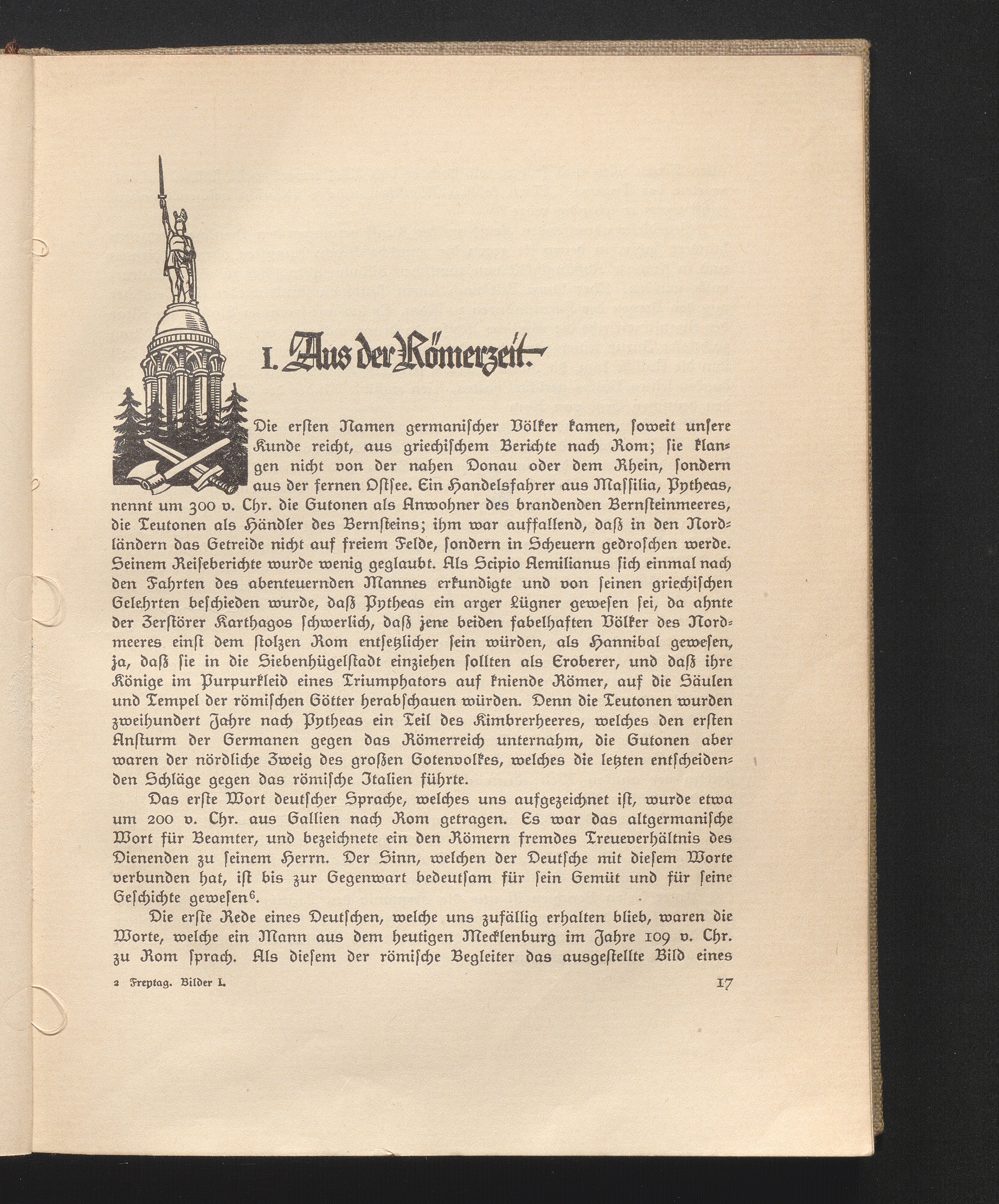 I. Aus der Römerzeit. Erste überlieferte Lebensäuszerungen der Germanen. Die Germania[...]