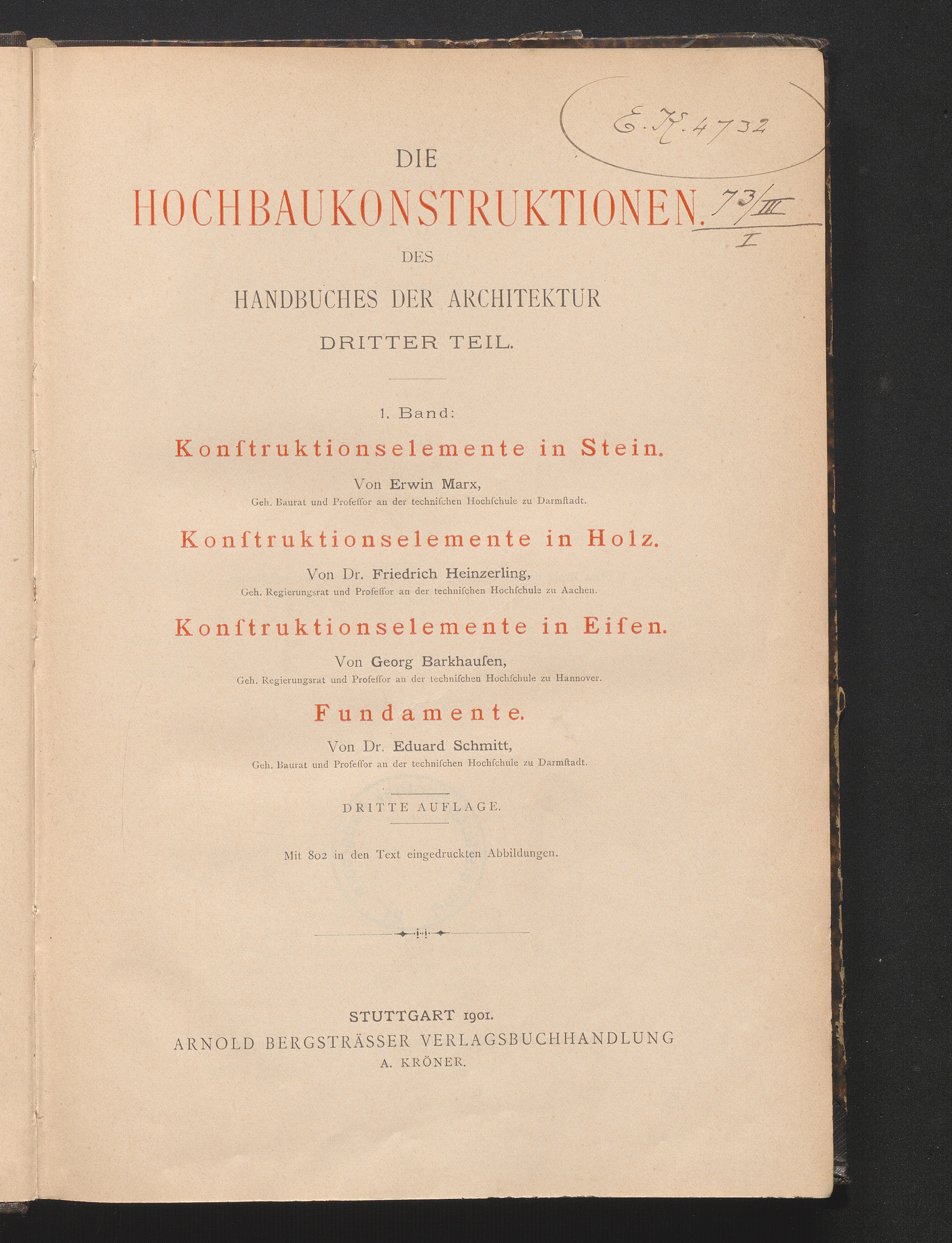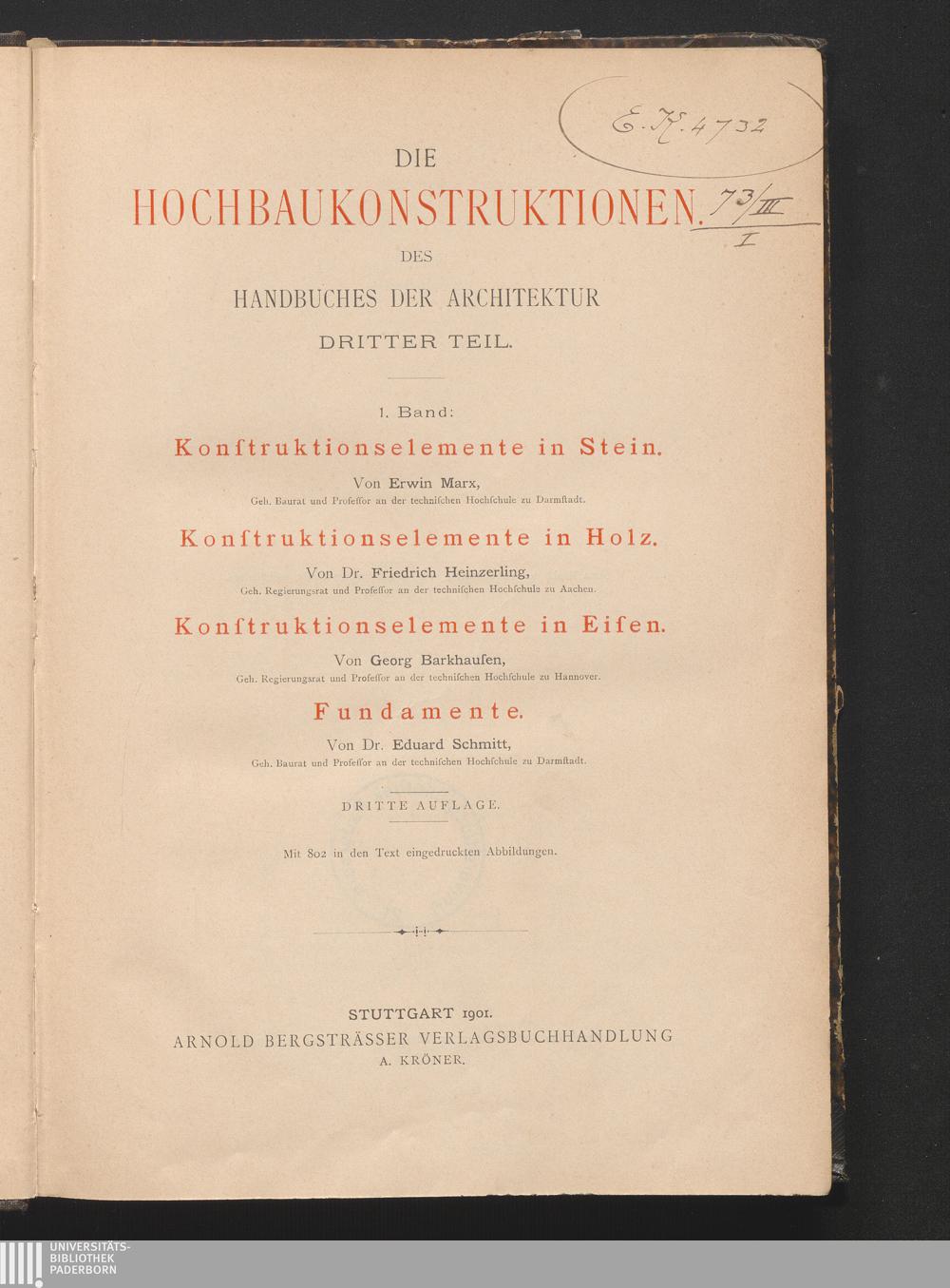 Konstruktions-Elemente in Stein, Holz und Eisen, Fundamente / von E. Marx ...