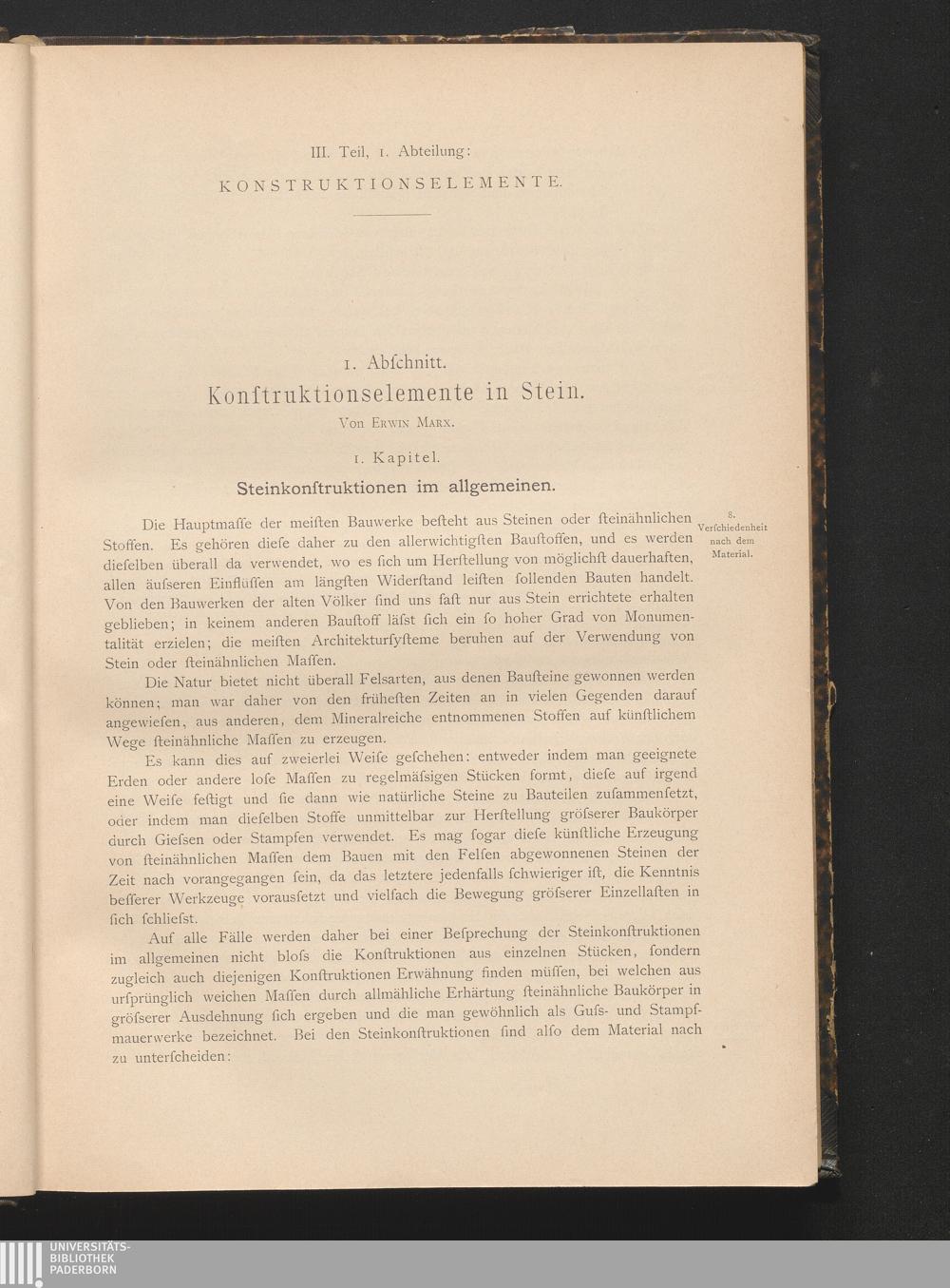 1. Abschnitt: Konstruktionselemente in Stein.