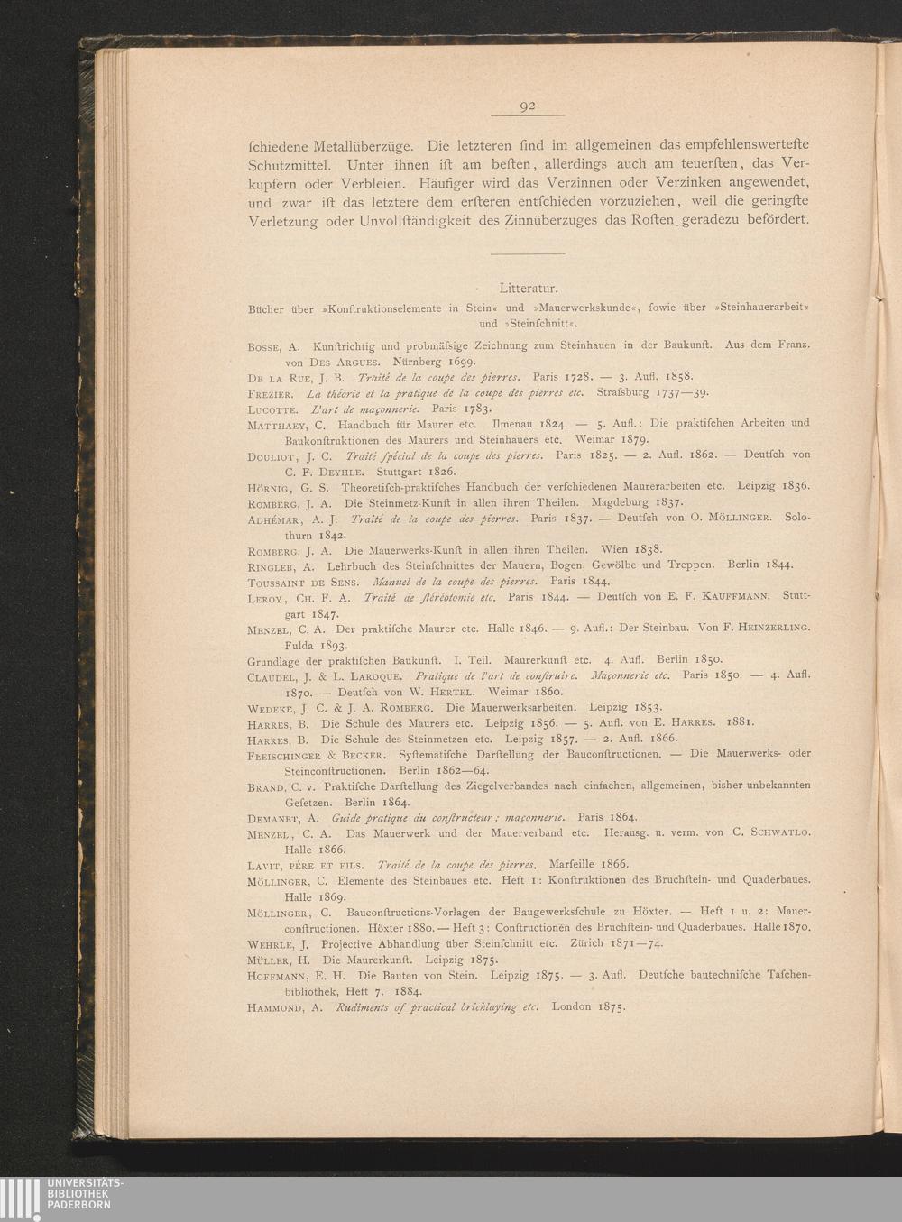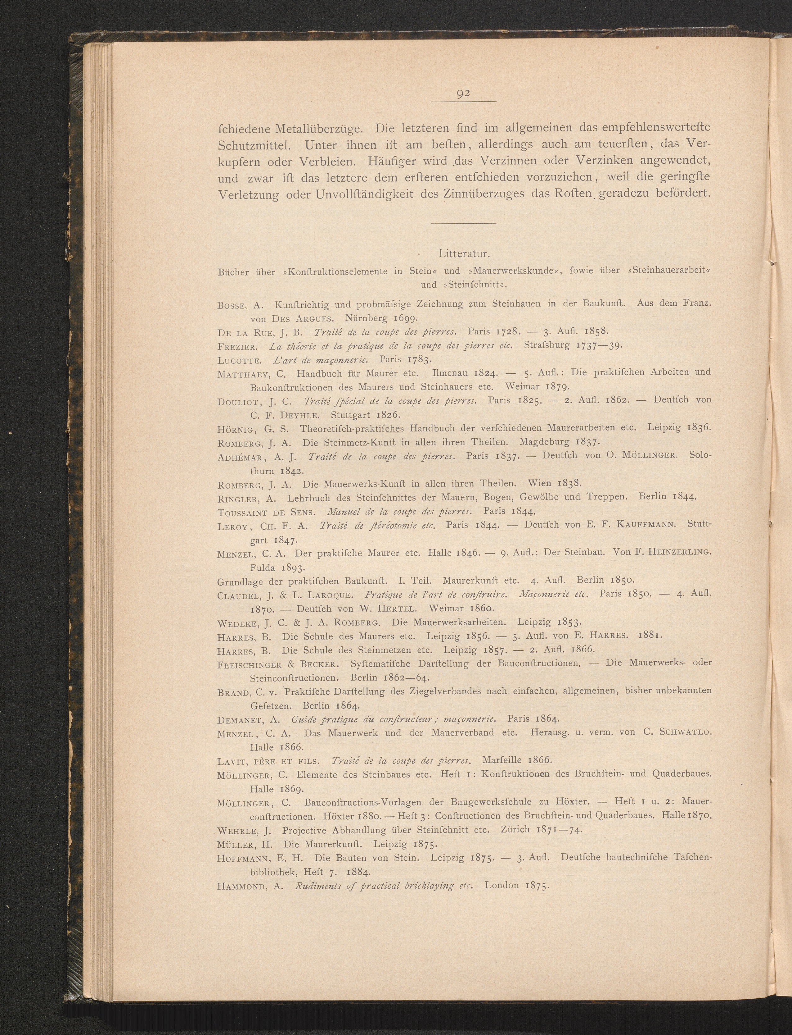 Litteratur: Bücher über "Konstruktionselemente in Stein" und "Mauerwerkskunde", sowie[...]