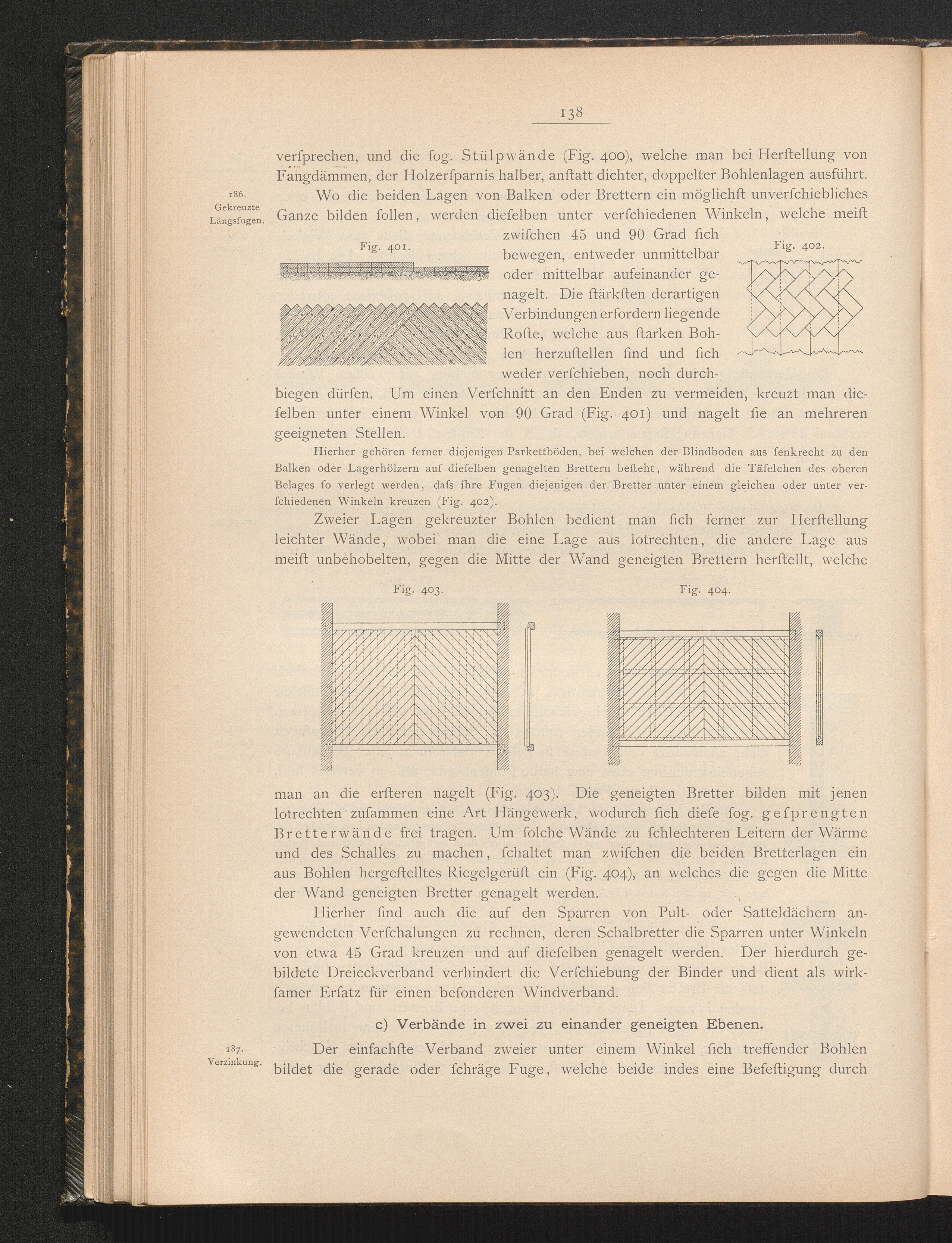 c) Verbände in zwei zu einander geneigten Ebenen