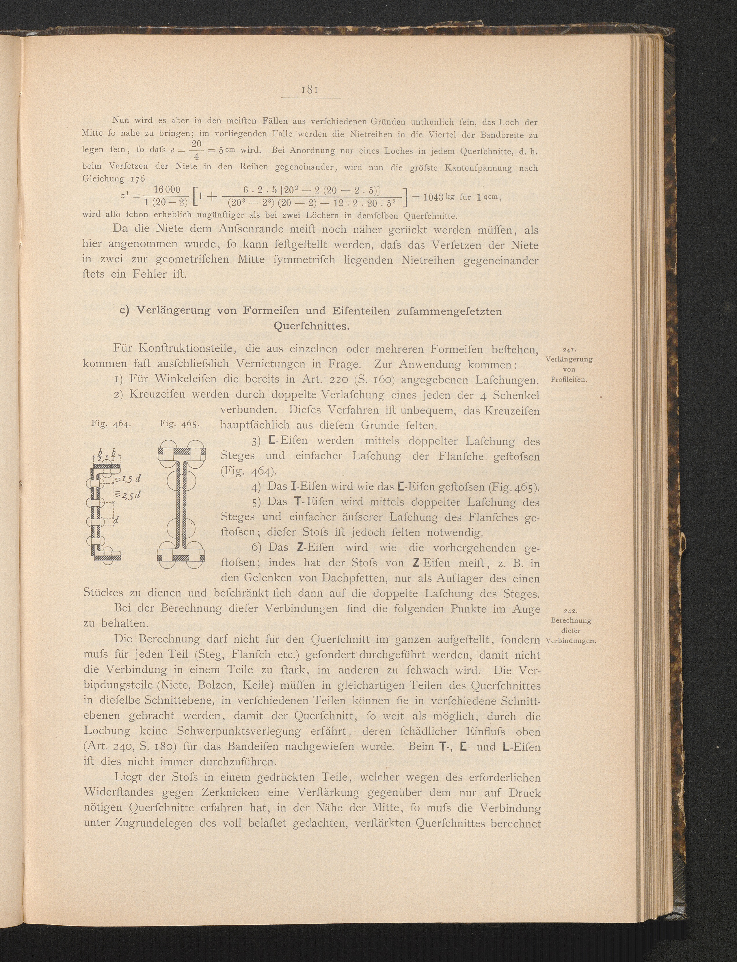 c) Verlängerung von Profileisen und Eisenteilen zusammengesetzen Querschnittes