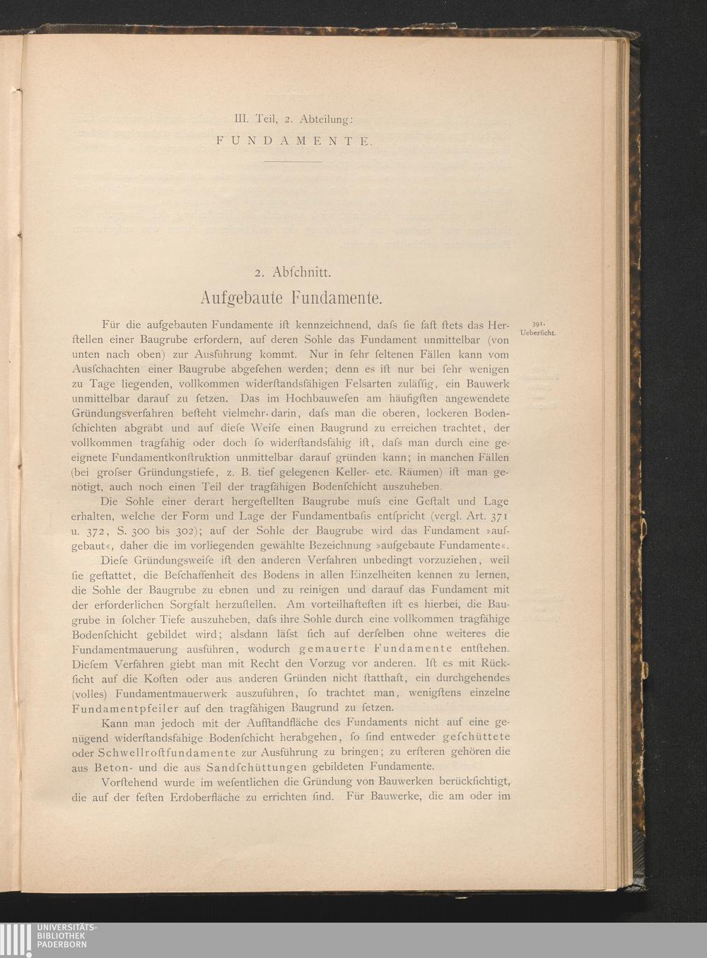 Konstruktions-Elemente in Stein, Holz und Eisen, Fundamente