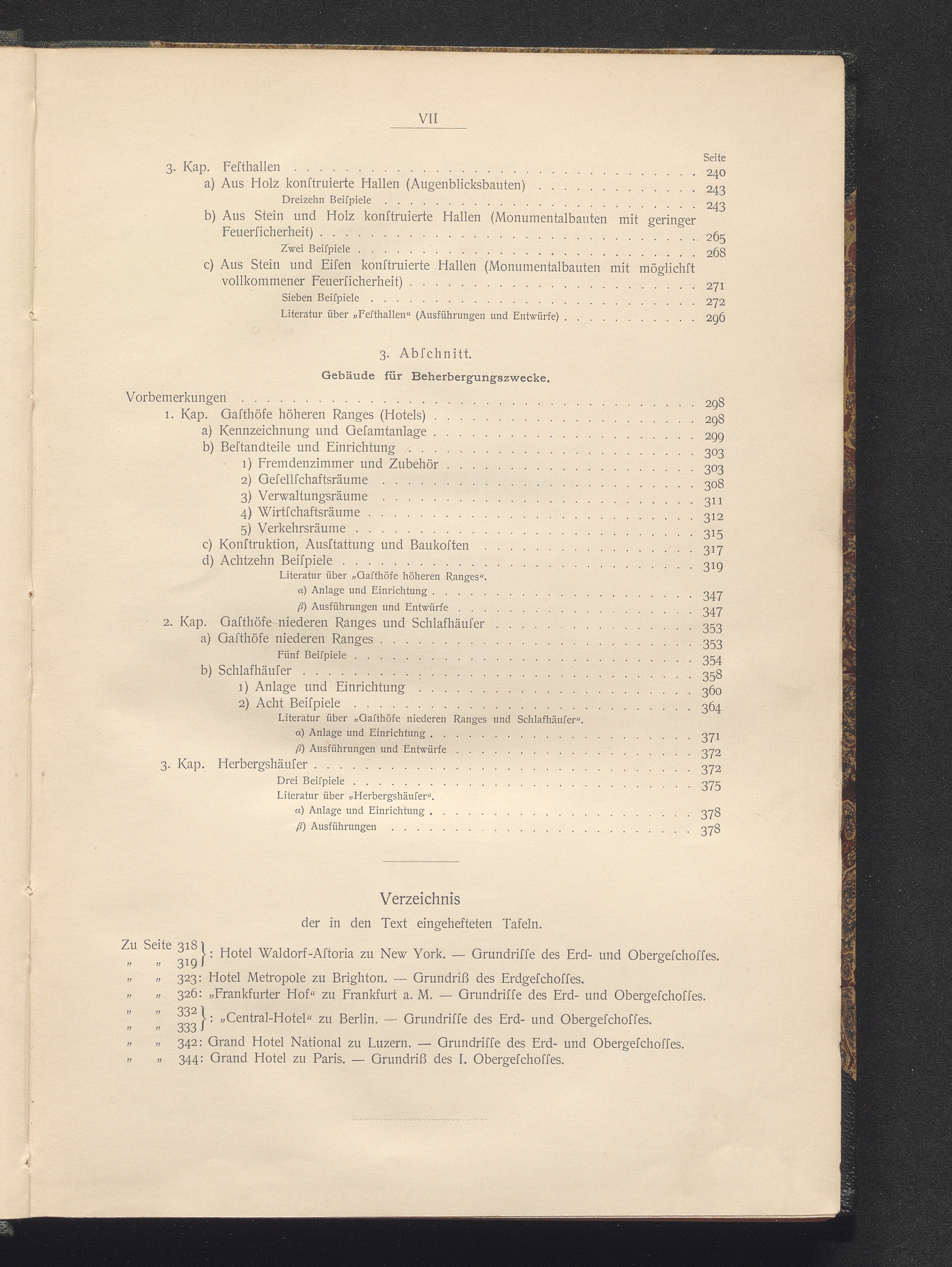 Verzeichnis der in den Text eingehefteten Tafeln.
