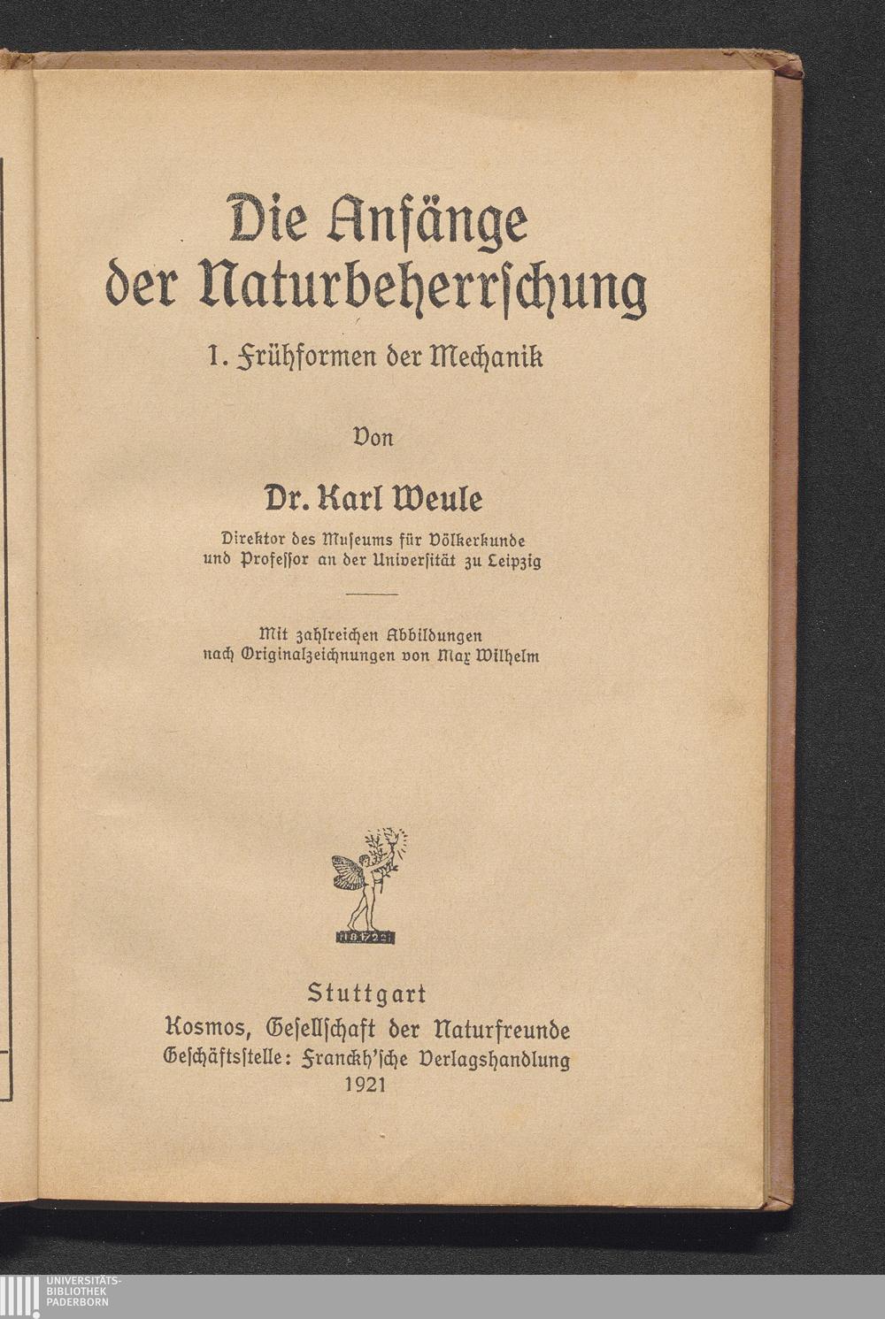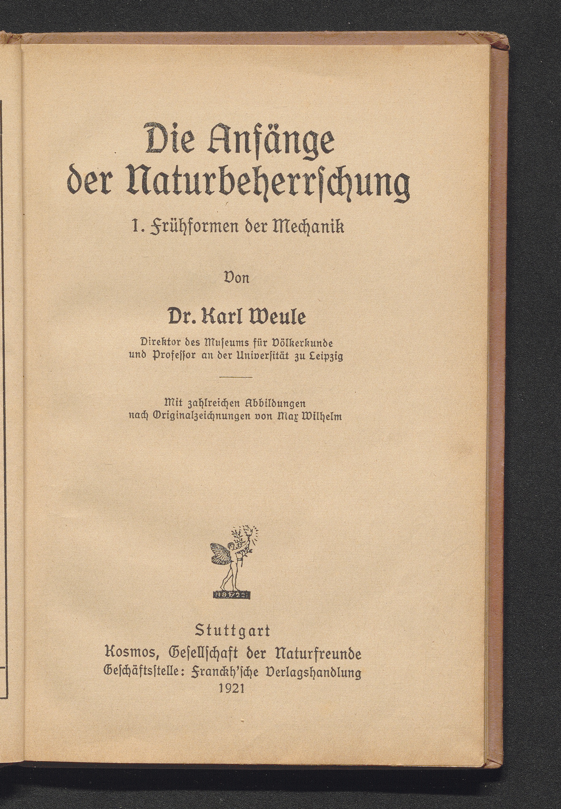 a) Der Hebel. Zweiarmige und einarmige Hebel. Bohrmaschinen in Vorzeit und Gegenwart. Das Wurfholz und die Schleuder. Zentrifugal- und Zentripetalkraft. Die Ölpresse der Pangwe. Das Tipiti-Problem.