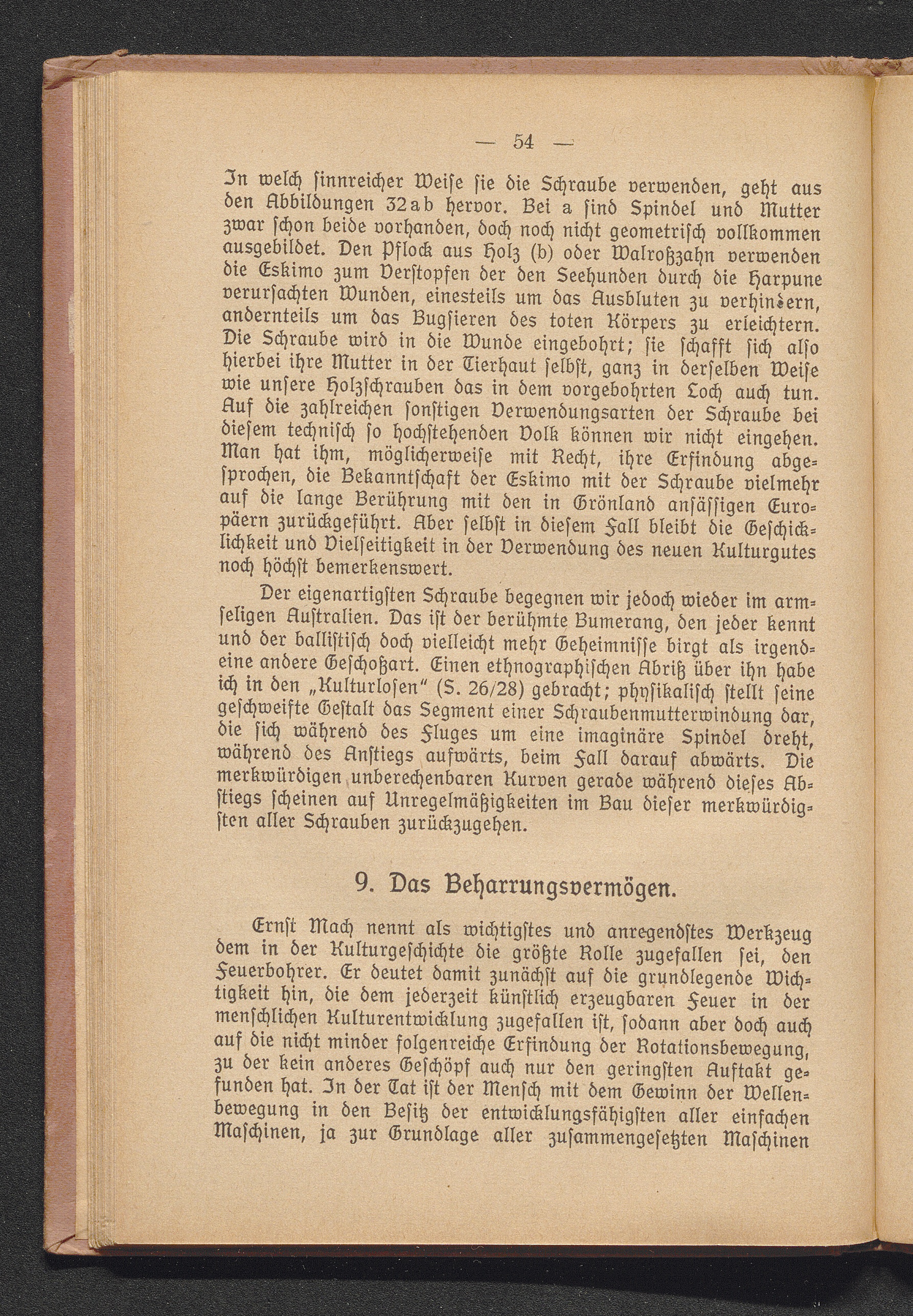 9. Das Beharrungsvermögen. Der Besitz der Rotation als ein Kriterium des Fortschritts. Das Wesen der Trägheit. Kreisel und Diabolo. Spindel und Spinnwirtel. Bola und Lasso.
