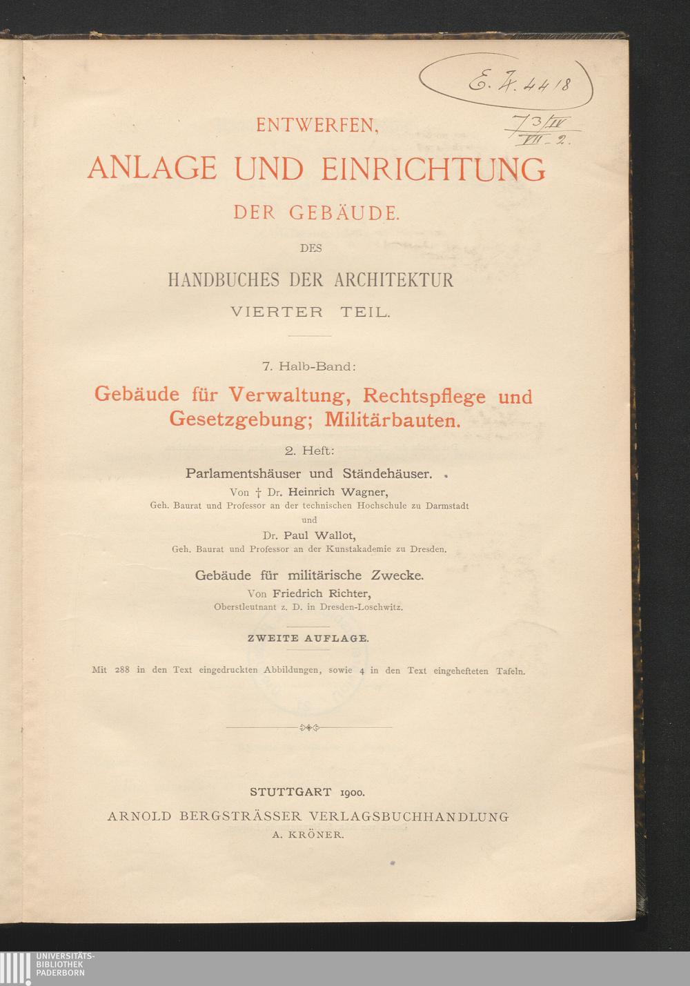 Parlamentshäuser und Ständehäuser / von Heinrich Wagner u. Paul Wallot
