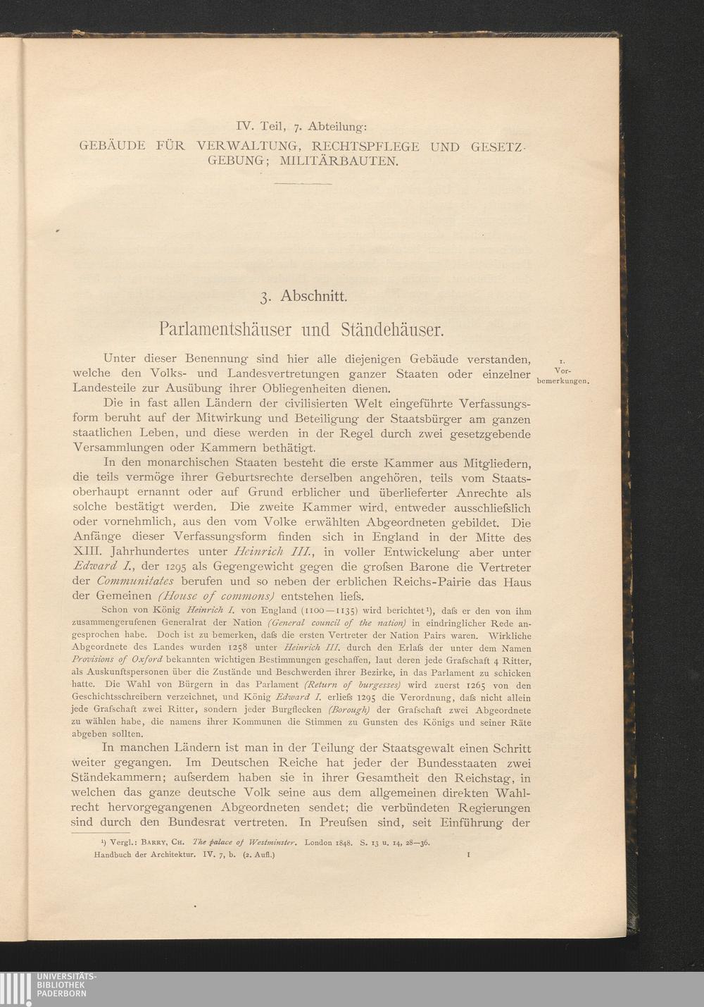 3. Abschnitt: Parlamentshäuser und Ständehäuser