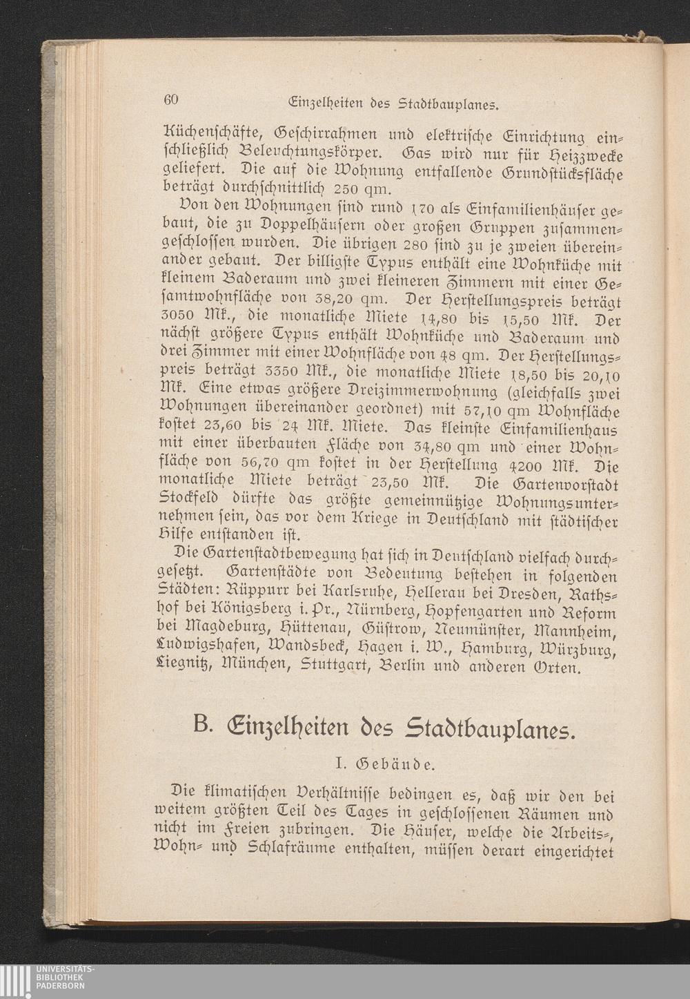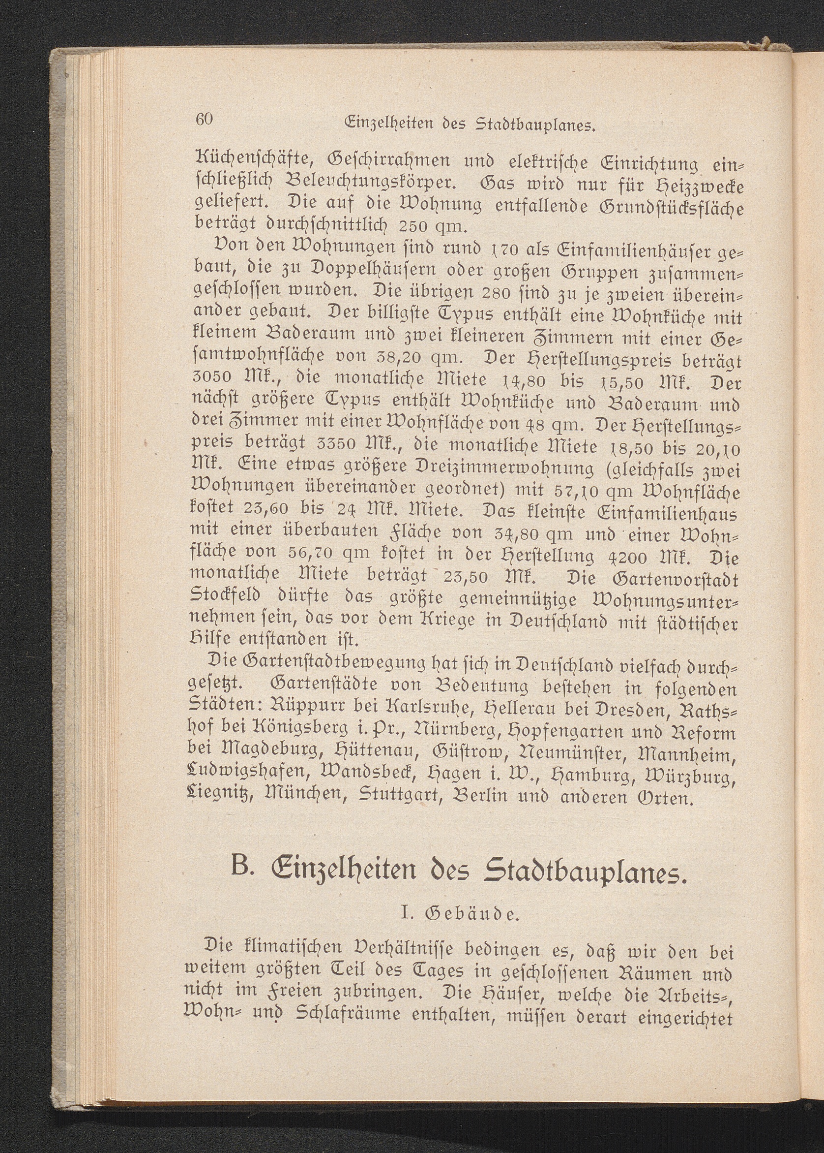 B. Einzelheiten des Stadtbauplanes