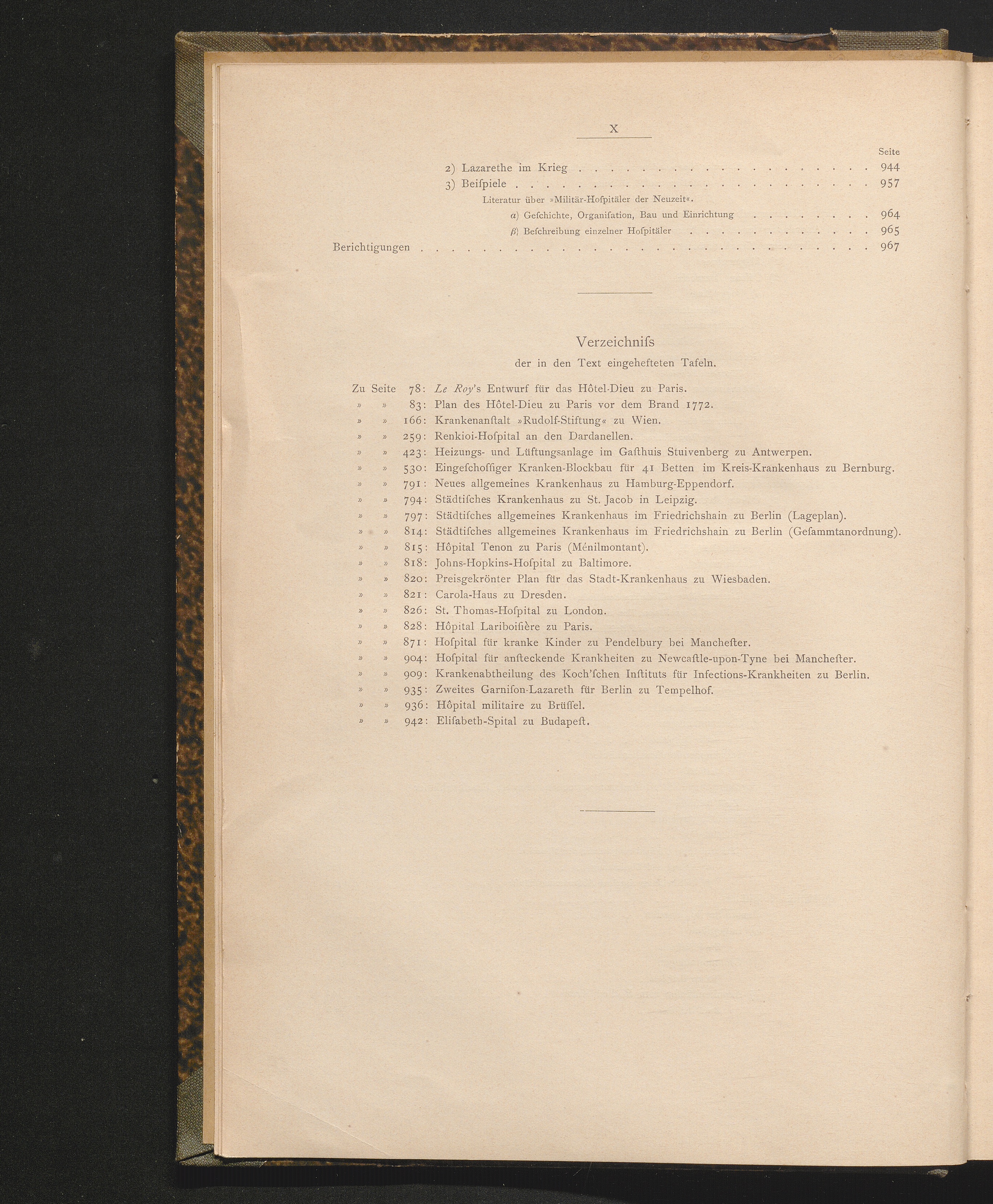Verzeichniss der in den Text eingehefteten Tafeln.