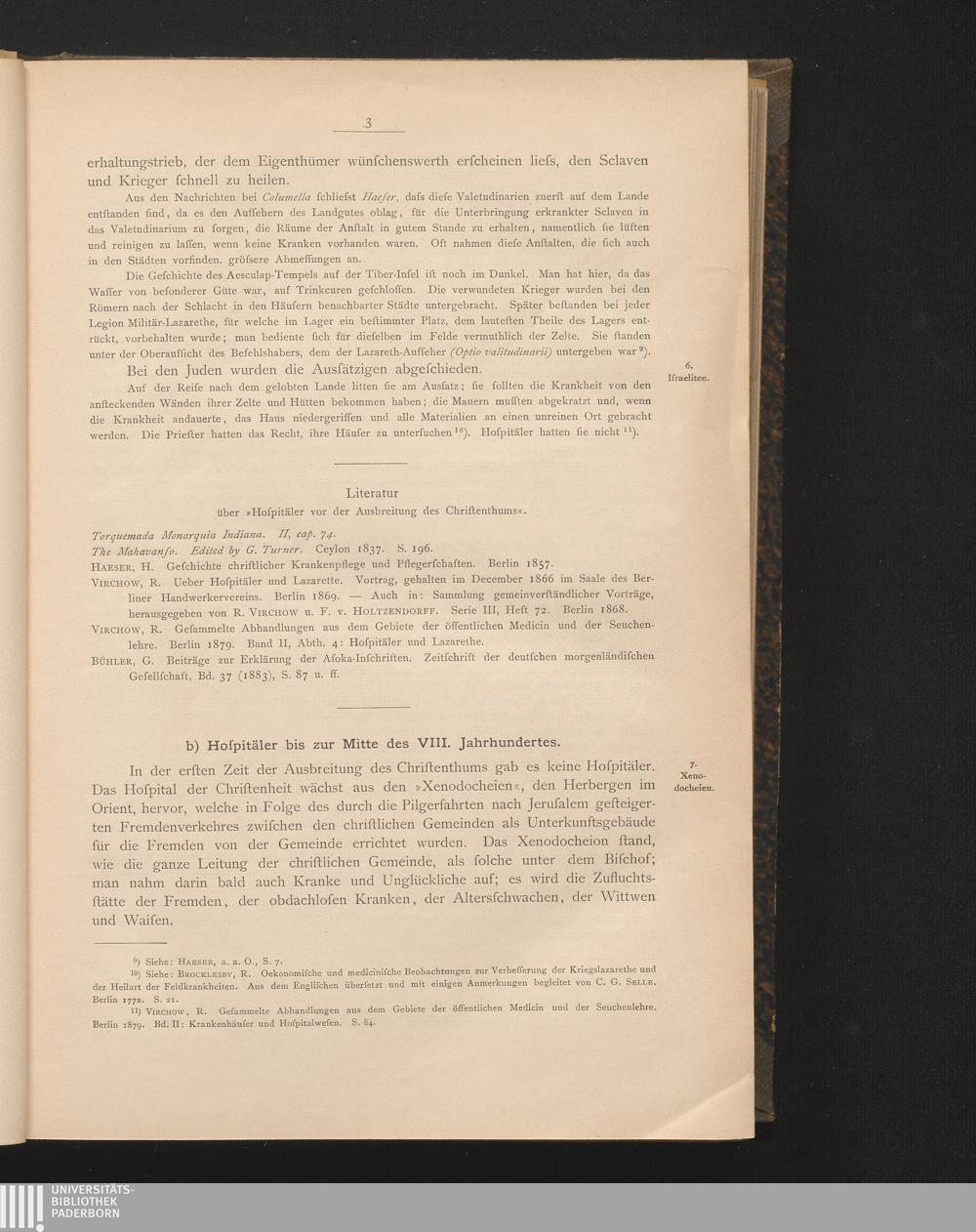b) Hospitäler bis Mitte des VIII. Jahrhundertes