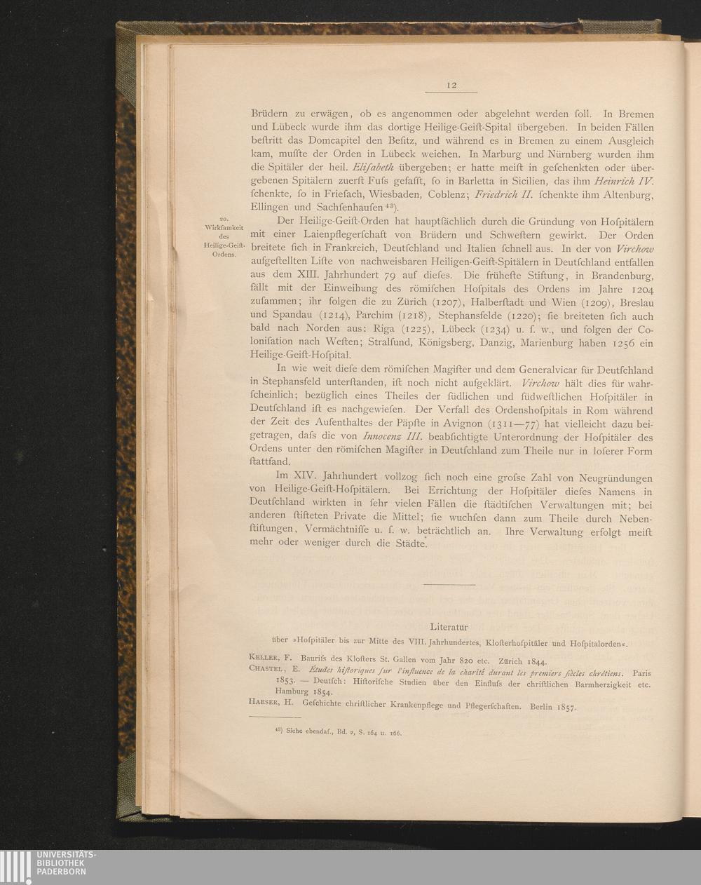 Literatur über »Hospitäler bis Mitte des VIII. Jahrhunderts, Klosterhospitäler und[...]
