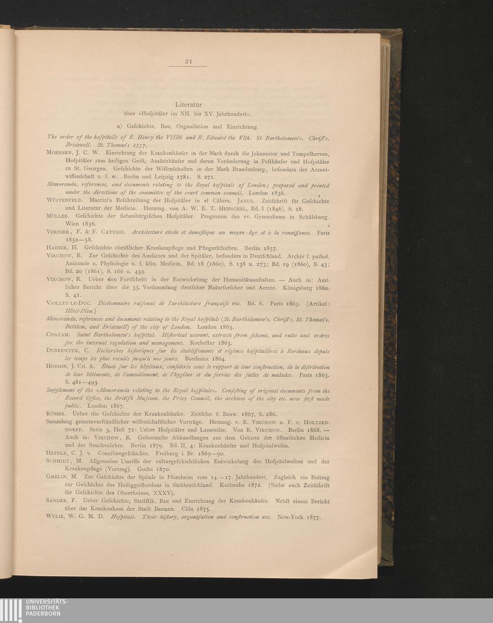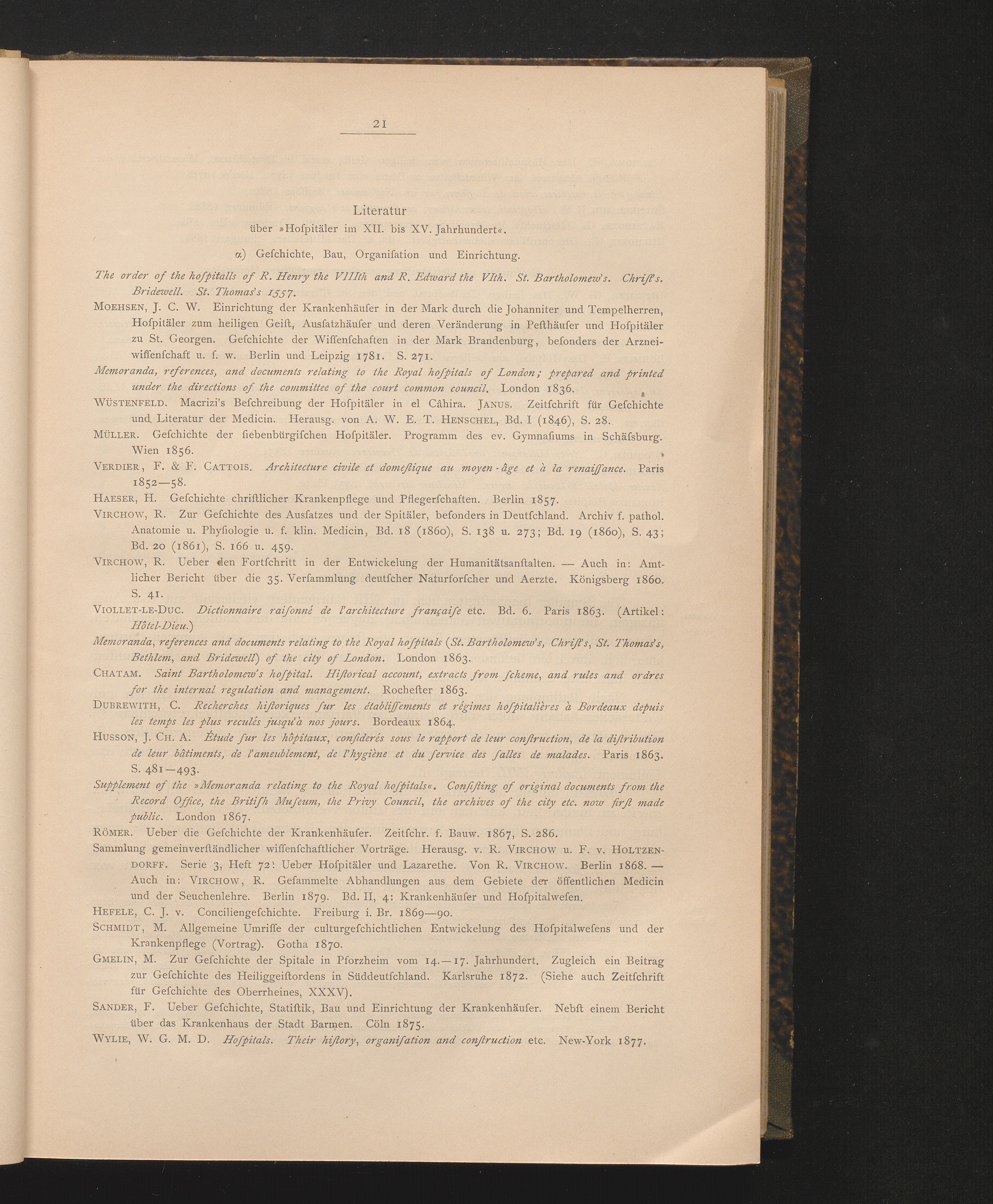 Literatur über »Hospitäler im XII. bis XV. Jahrhundert«
