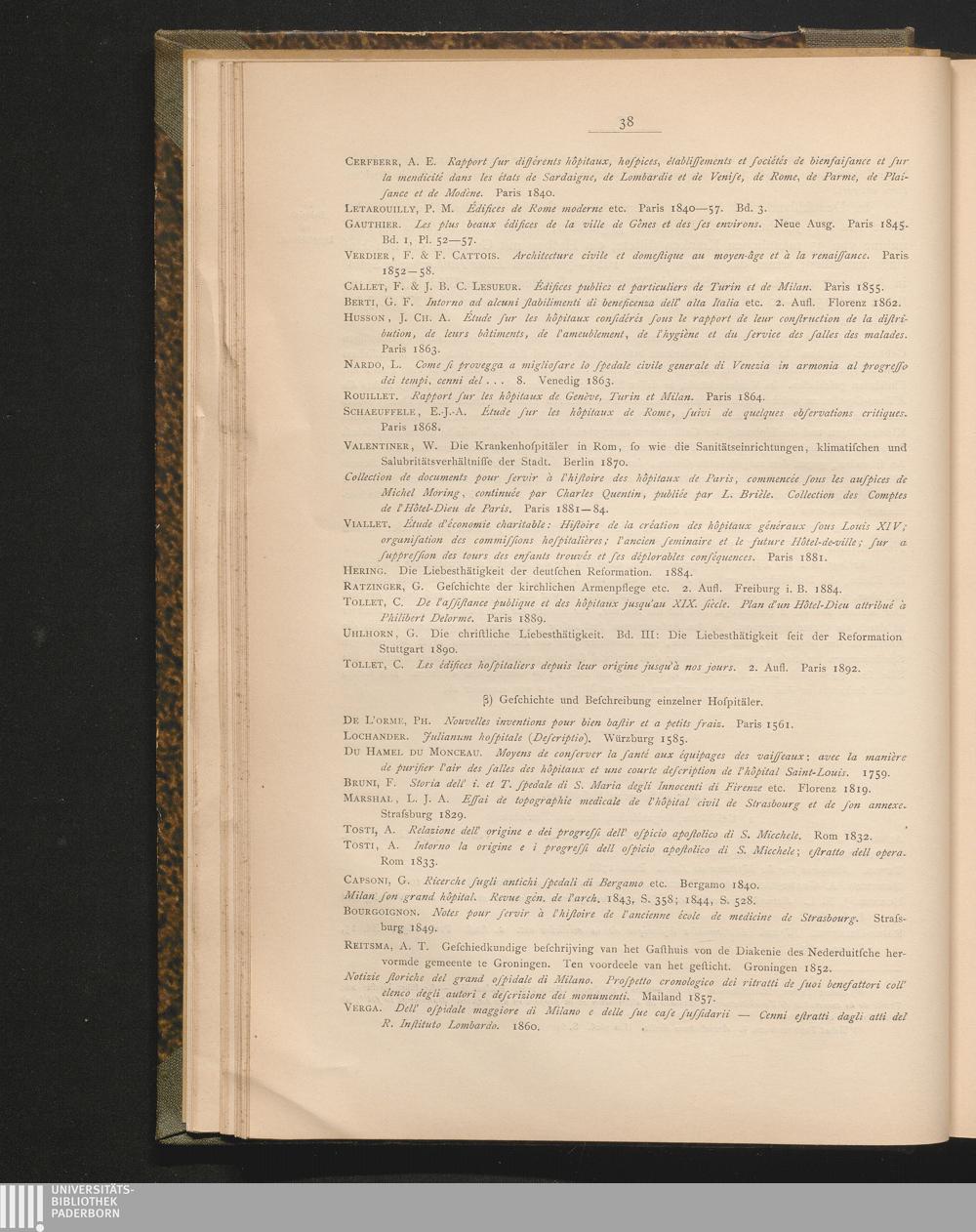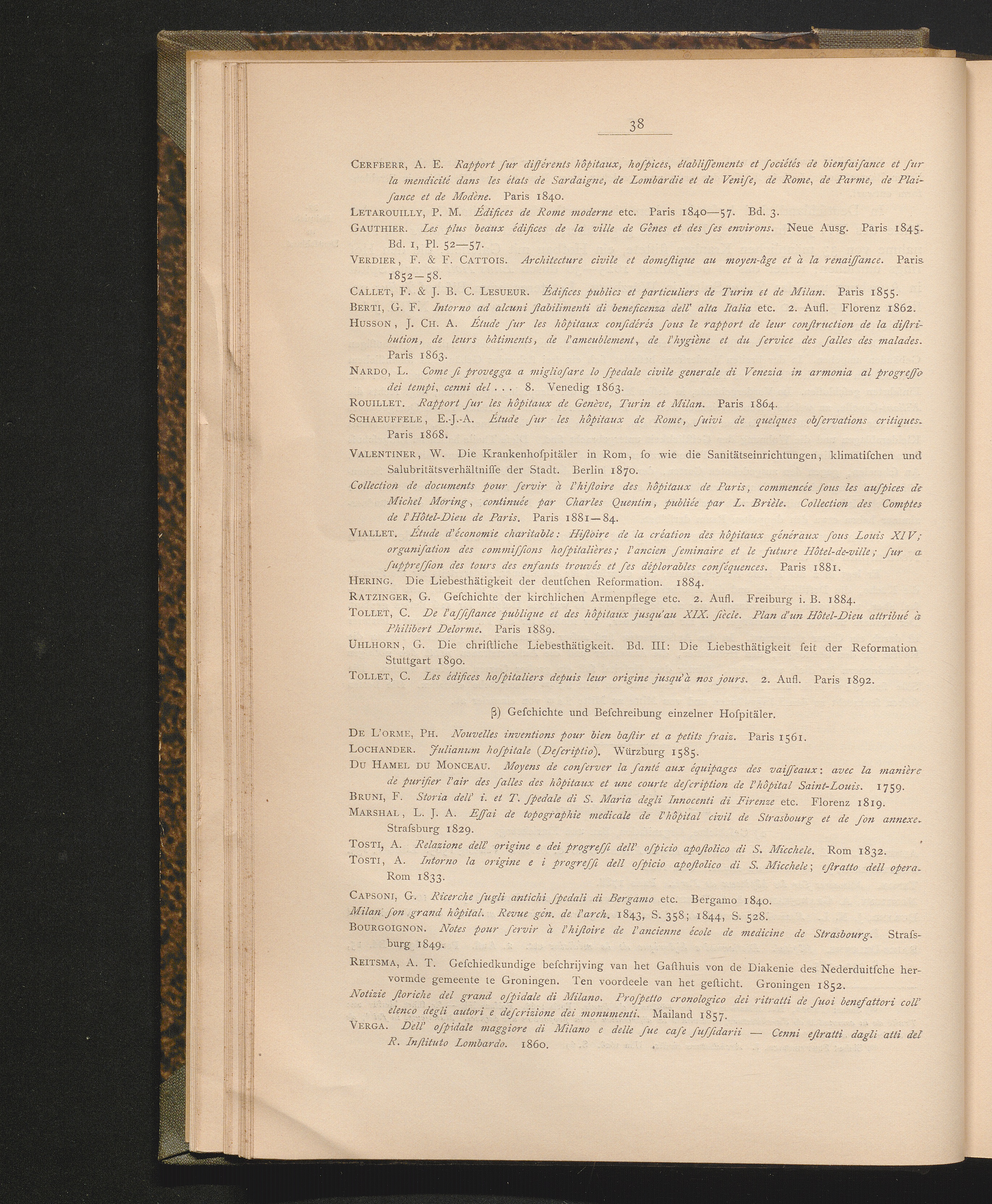 β) Geschichte und Beschreibung einzelner Hospitäler
