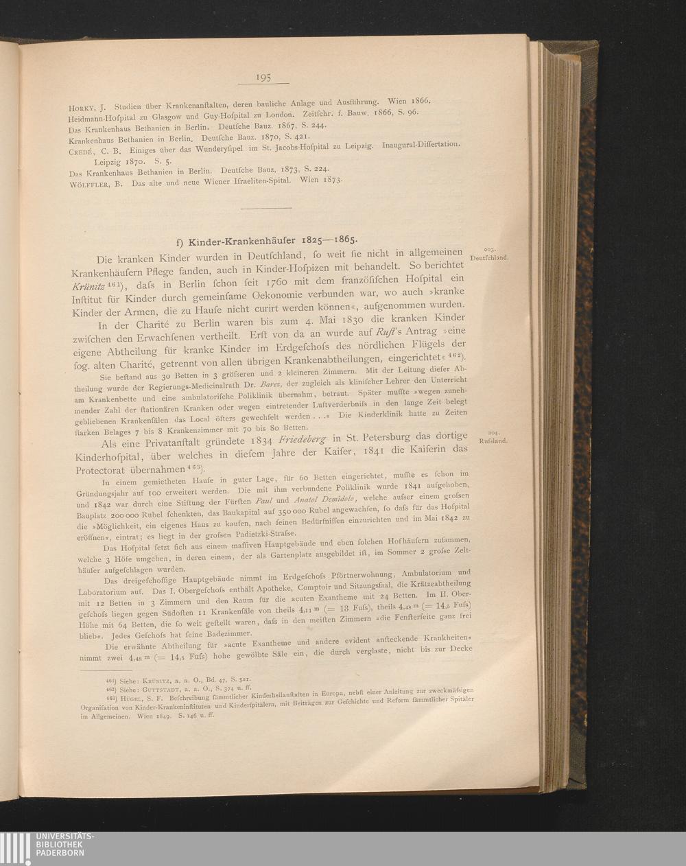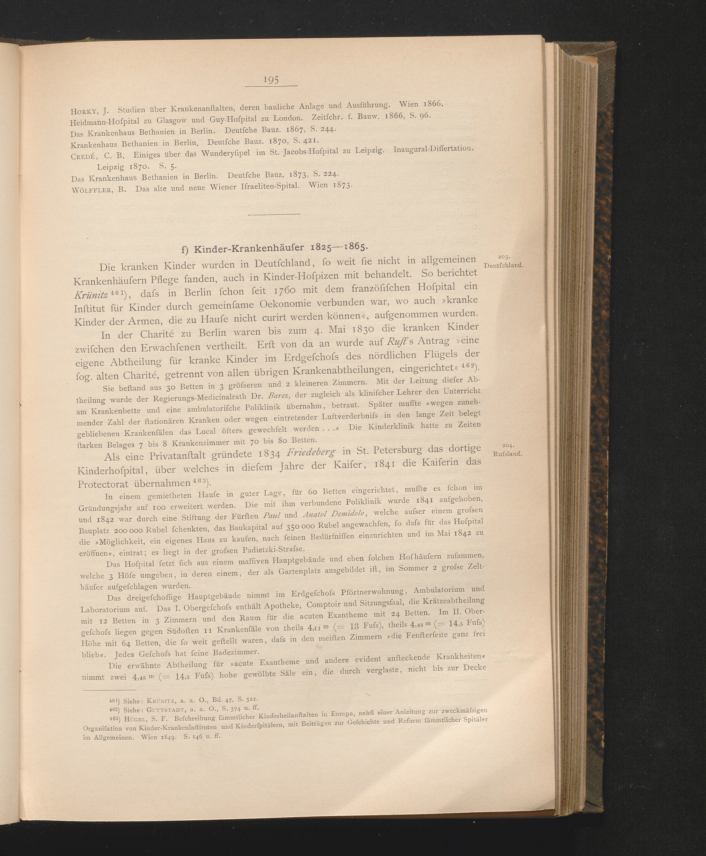 f) Kinder-Krankenhäuser 1825-1865