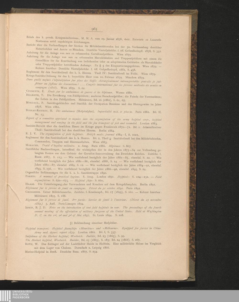 β) Beschreibung einzelner Hospitäler