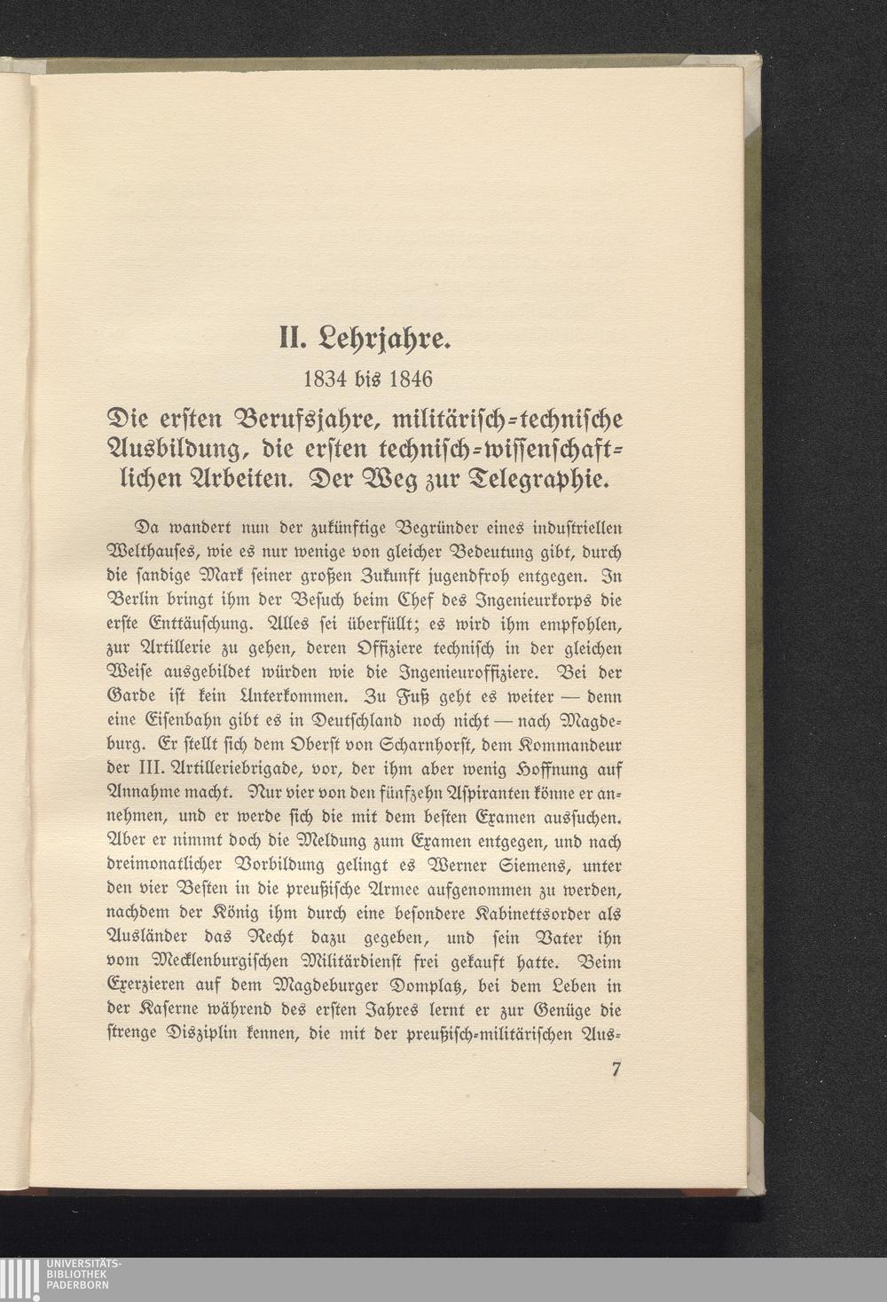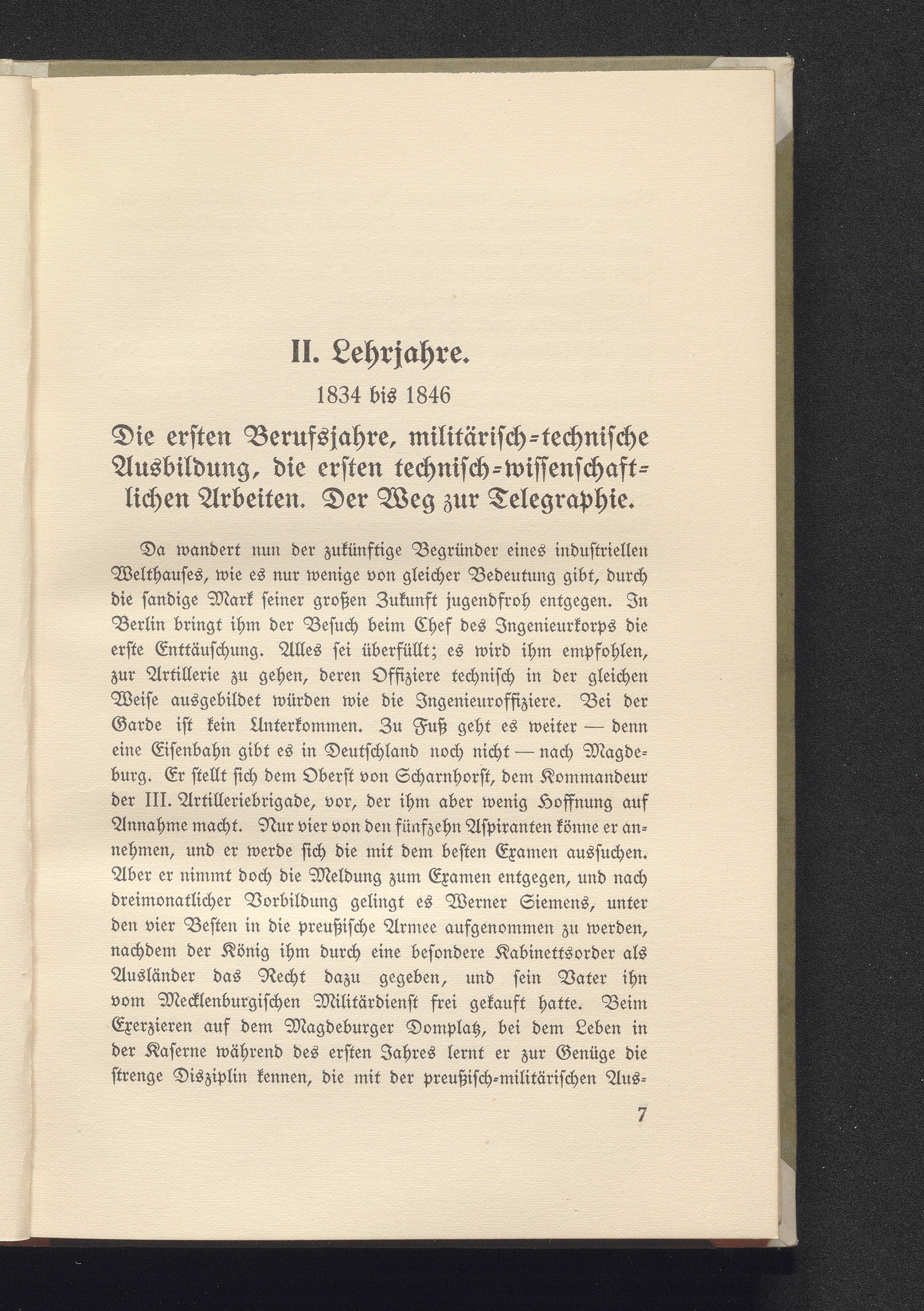 II. Lehrjahre. 1834 bis 1846. Die ersten Berufsjahre, militärisch-technische Ausbildung, die ersten technisch-wissenschaftlichen Arbeiten. Der Weg zur Telegraphie.