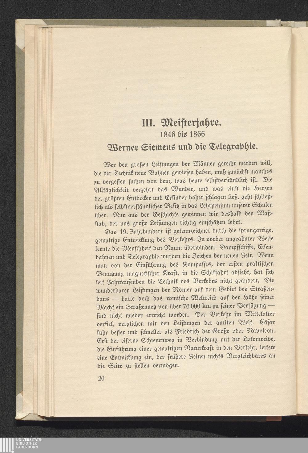 III. Meisterjahre. 1846 bis 1866. Werner Siemens und die Telegraphie.