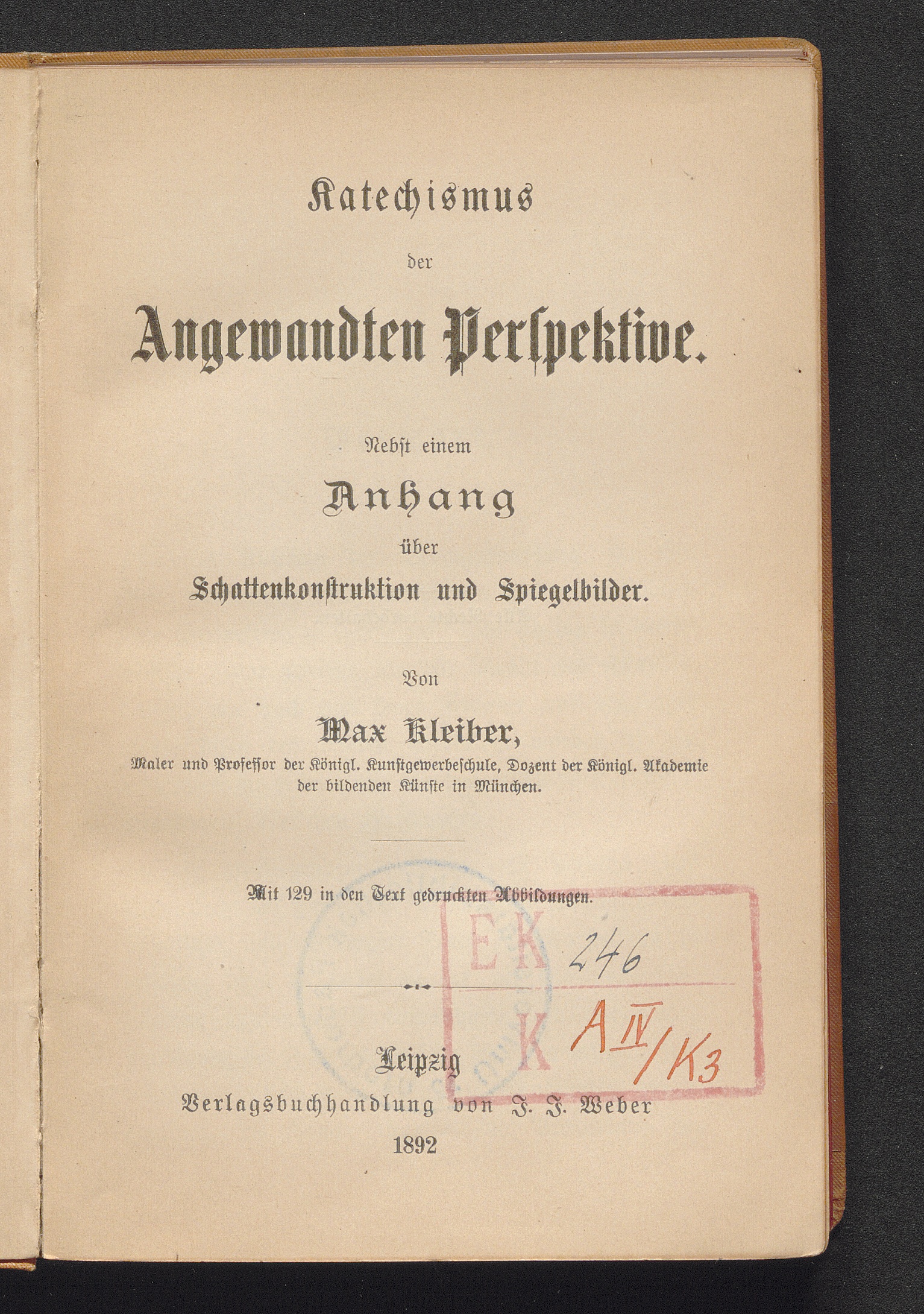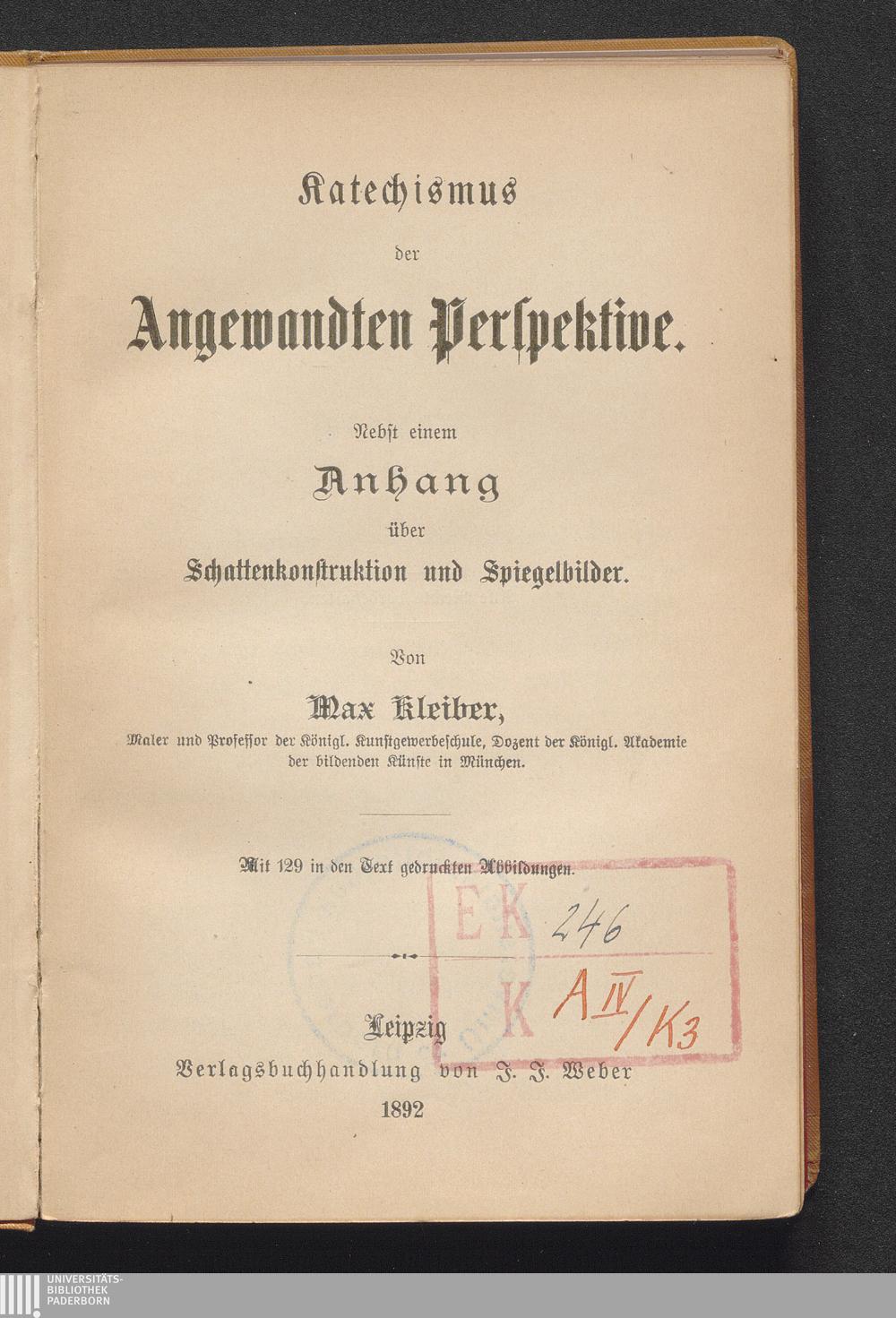 Katechismus der angewandten Perspektive : nebst einem Anhang über Schattenkonstruktion und Spiegelbilder / von Max Kleiber