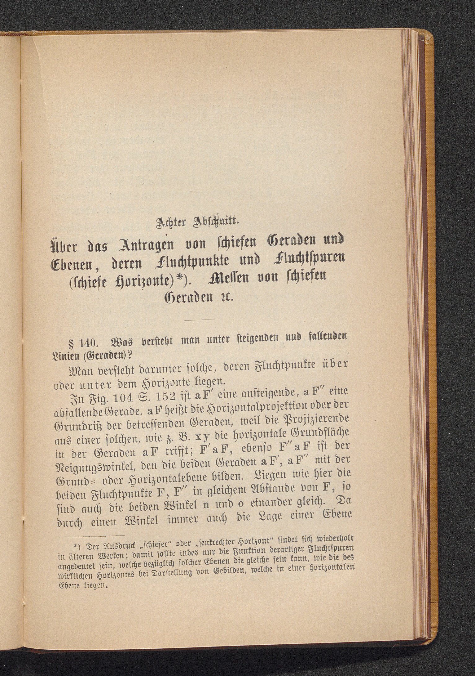 Achter Abschnitt. Über das Antragen von schiefen Geraden und Ebenen, deren Fluchtpunkte und Fluchtspuren (schiefe Horizonte). Messen von schiefen Geraden