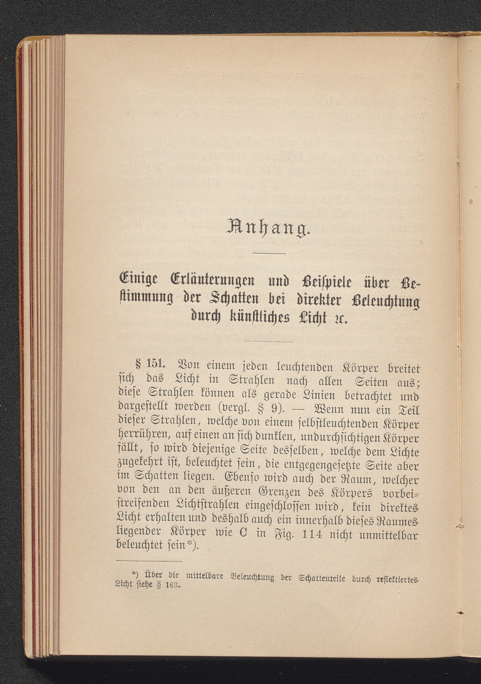 Anhang. Einige Erläuterungen und Beispiele über Bestimmung der Schatten bei direkter Beleuchtung durch künstliches oder natürliches Licht [et]c.