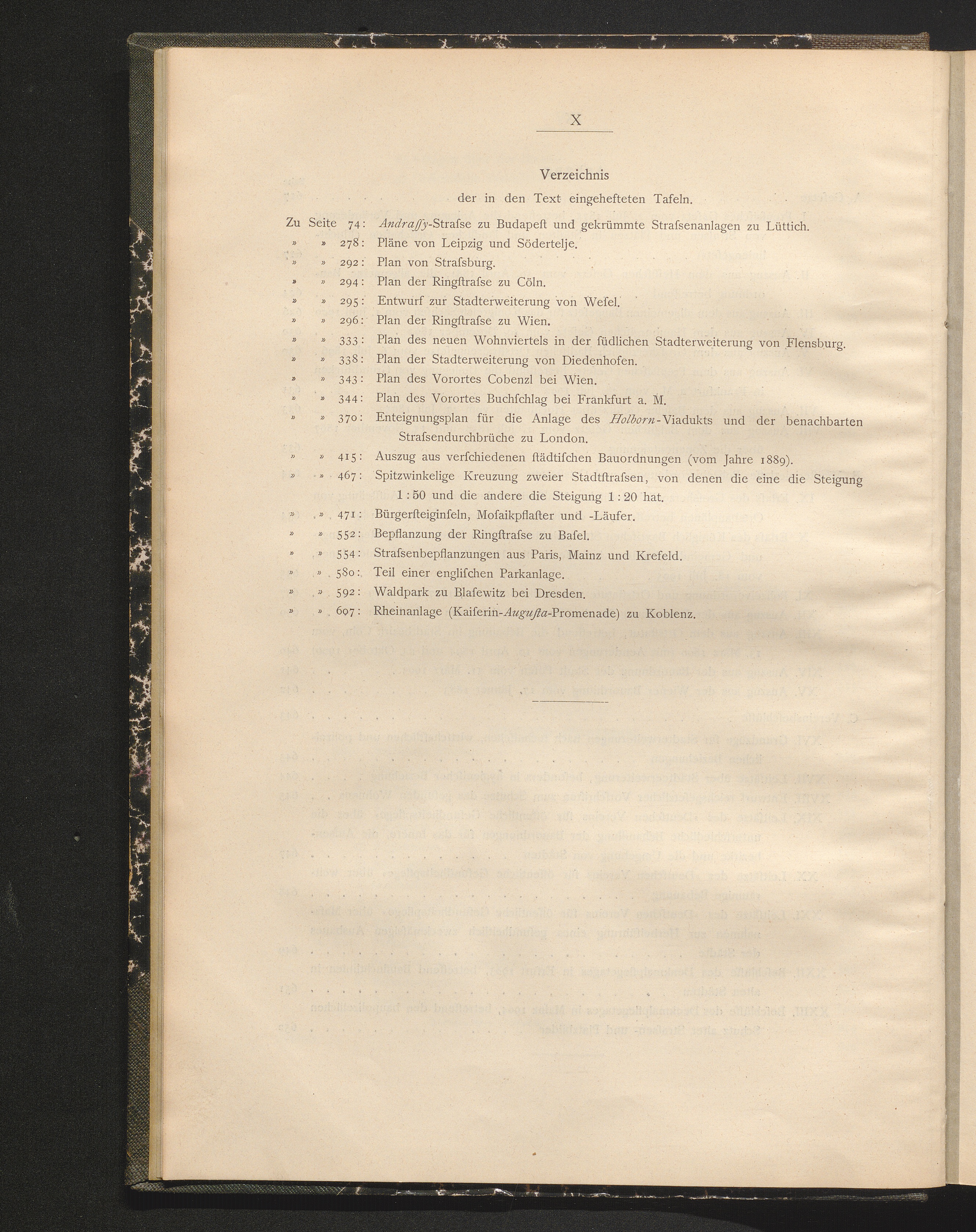 Verzeichnis der in den Text eingehefteten Tafeln.