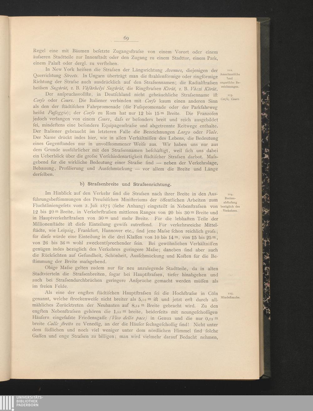 2. Kap. Verschiedene Strassenarten, ihre Breiten und Längen