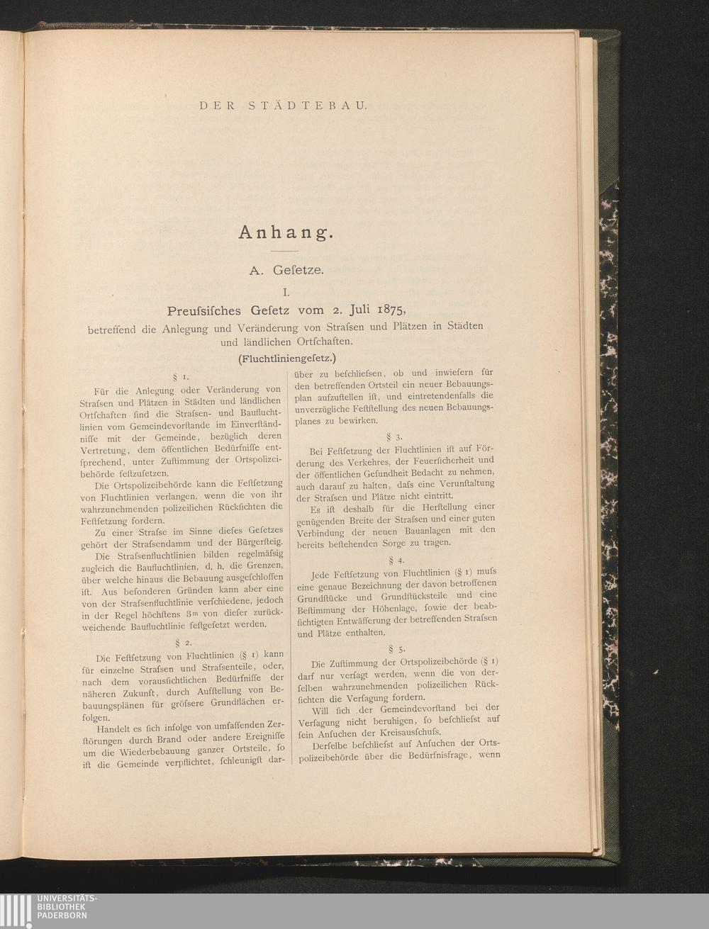 I. Preussisches Gesetz vom 2. Juli 1875, betreffend die Anlegung und Veränderung[...]