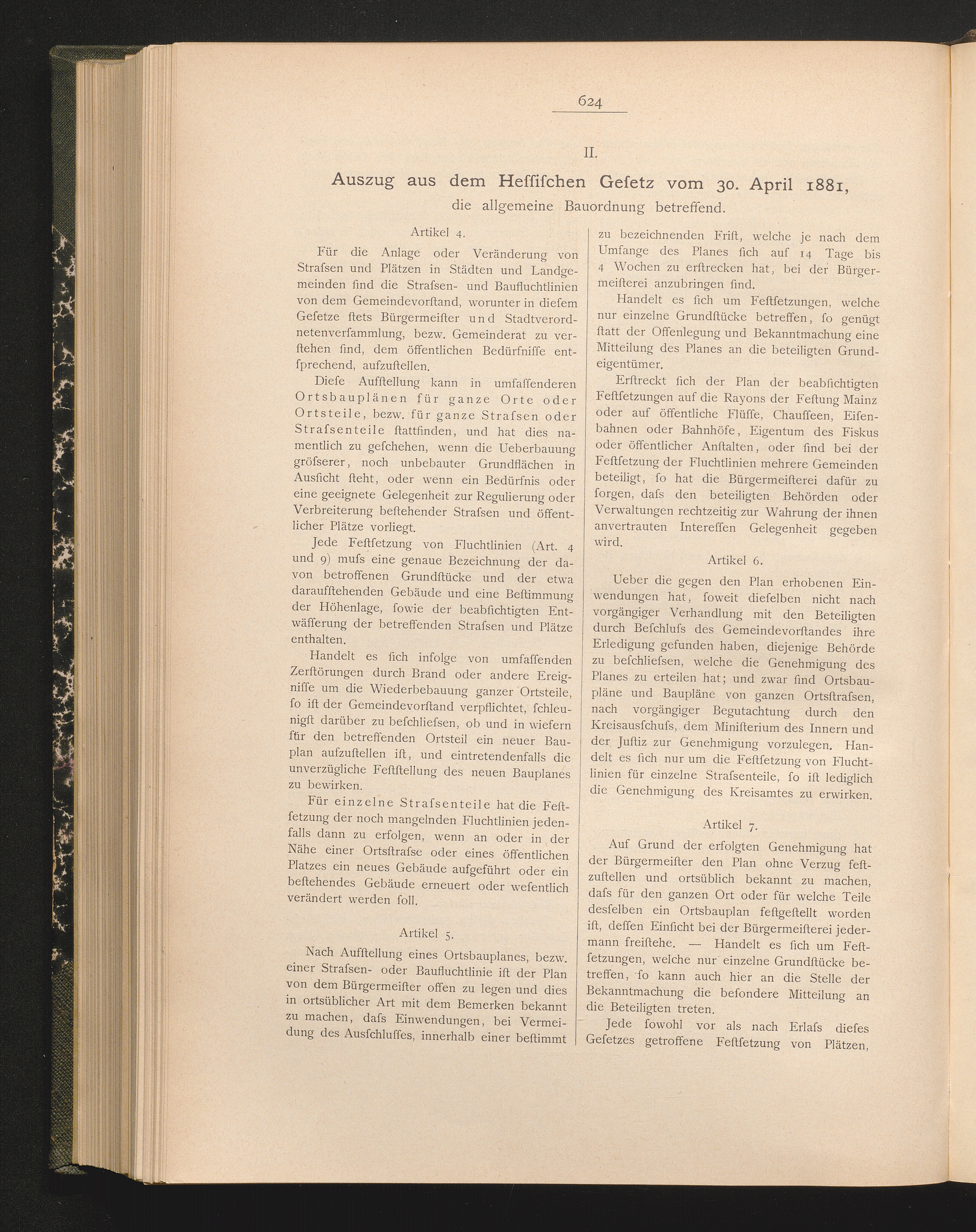 II. Auszug aus dem Hessischen Gesetz vom 30. April 1881, die allgemeine Bauordnung[...]