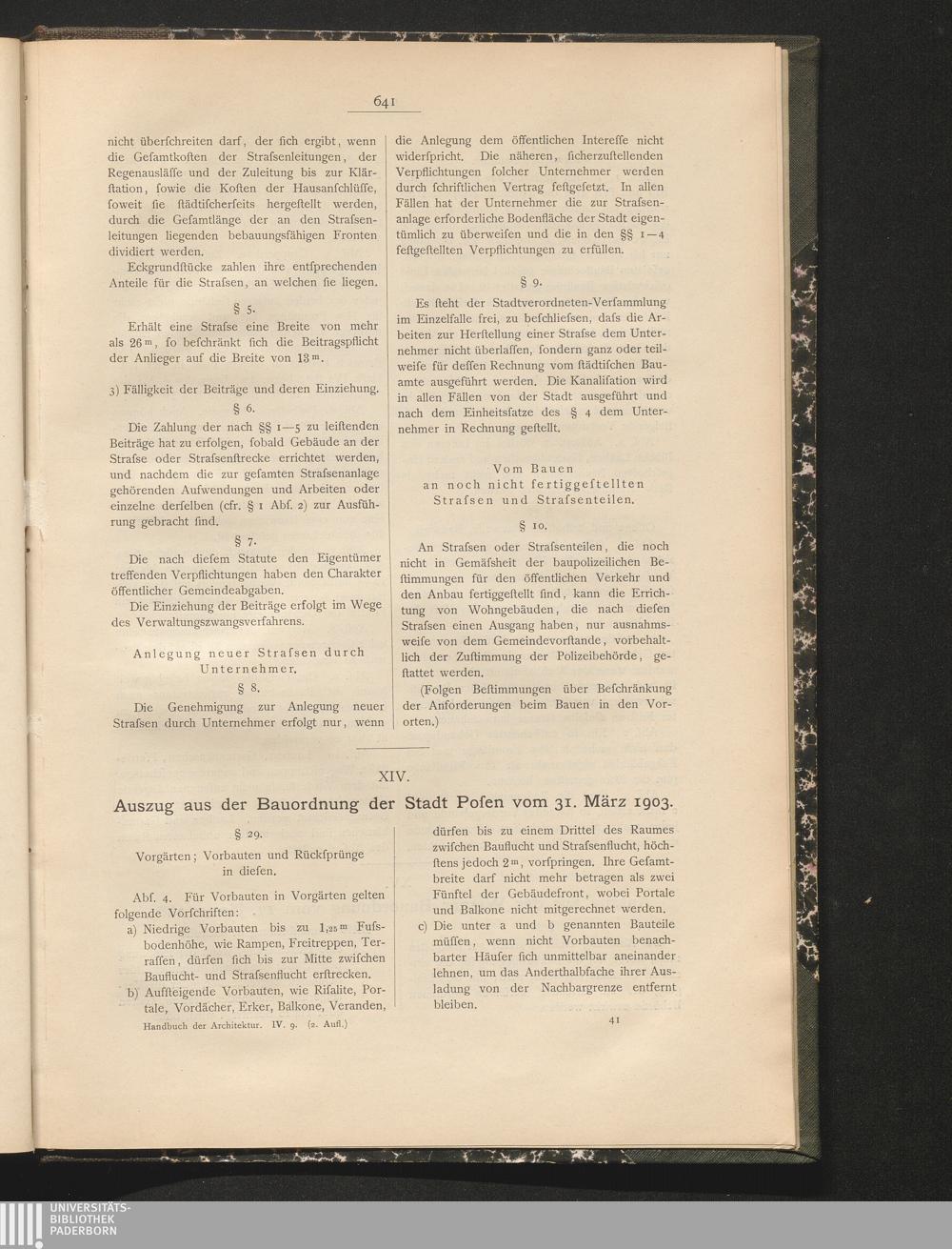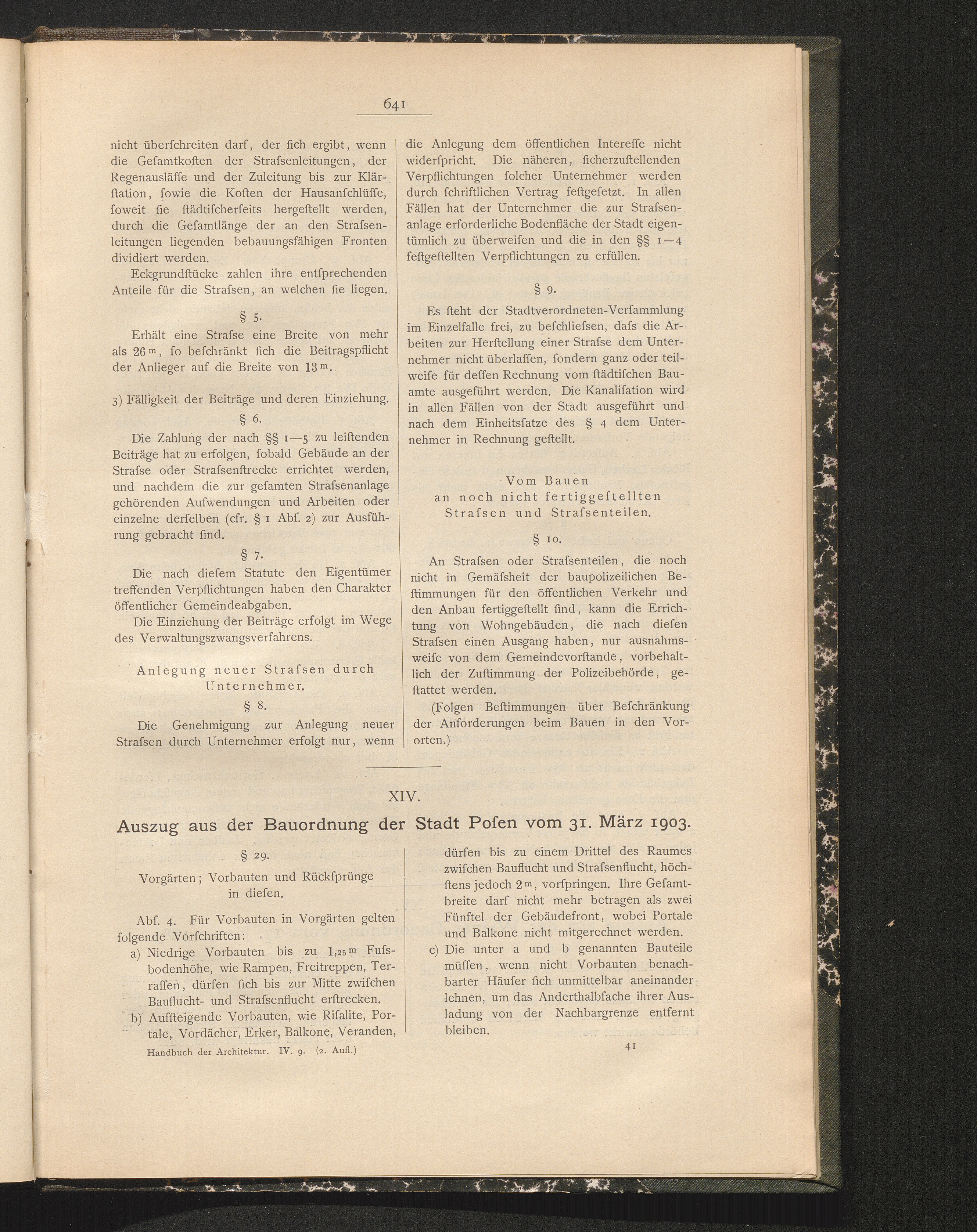XIV. Auszug aus der Bauordnung der Stadt Posen vom 31. März 1903