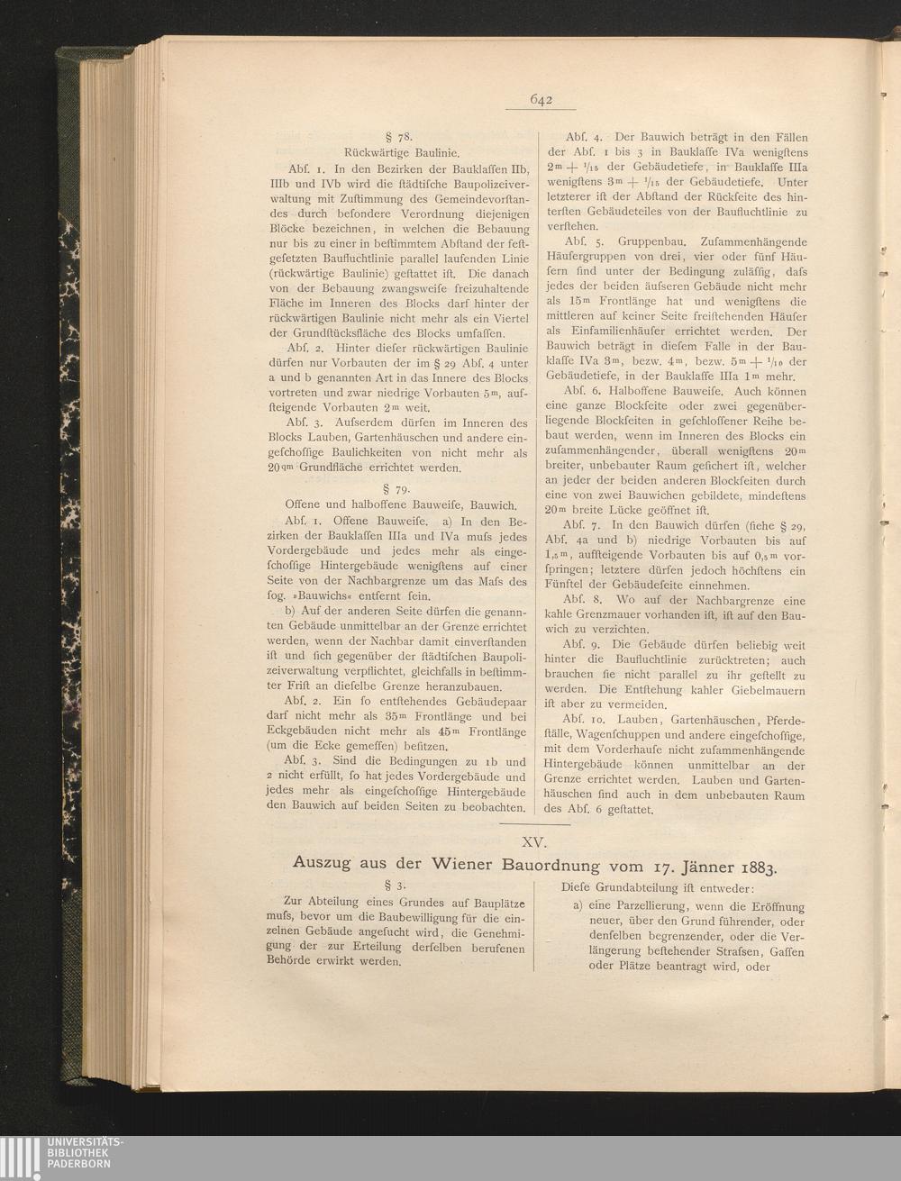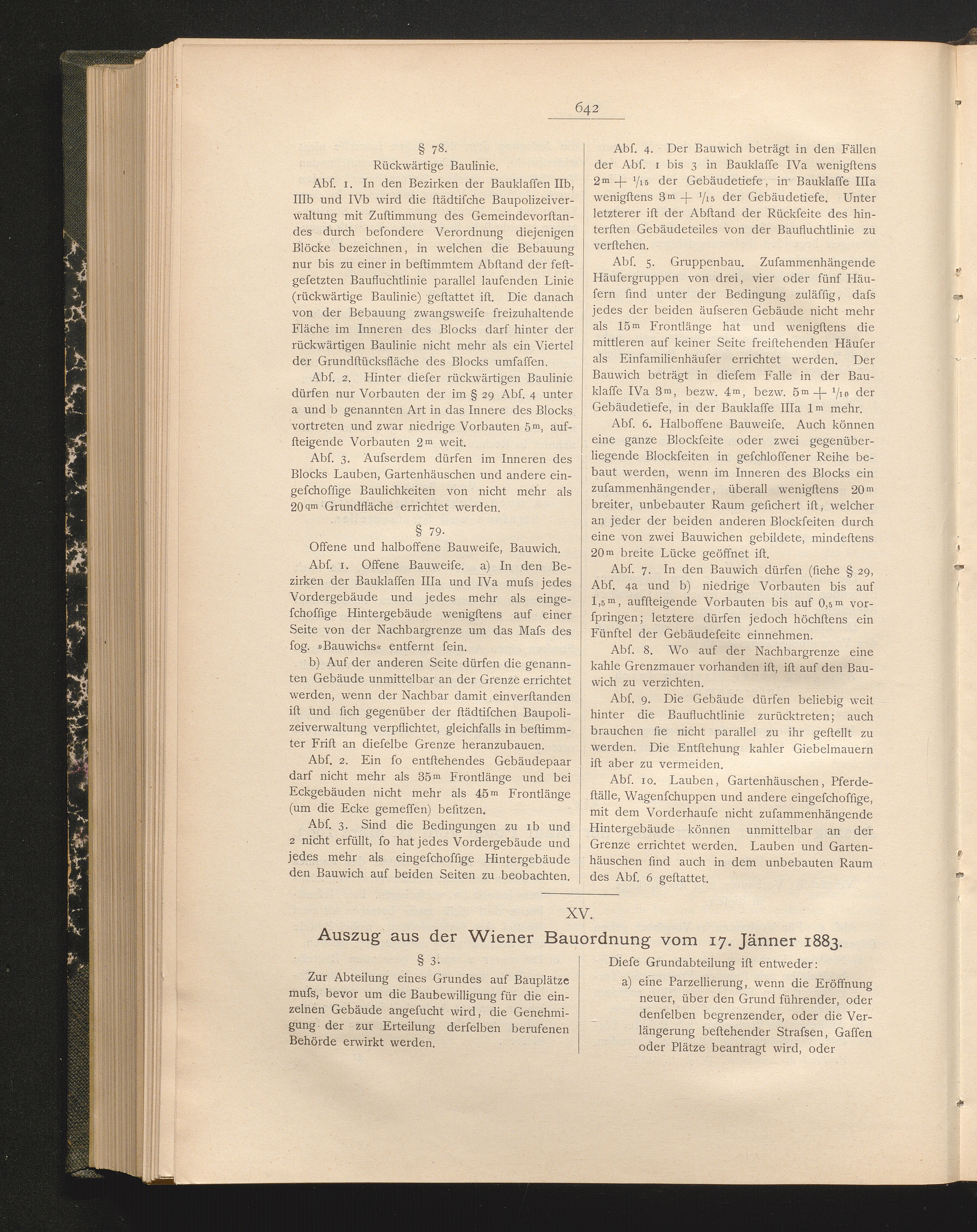 XV. Auszug aus der Wiener Bauordnung vom 17. Jänner 1883