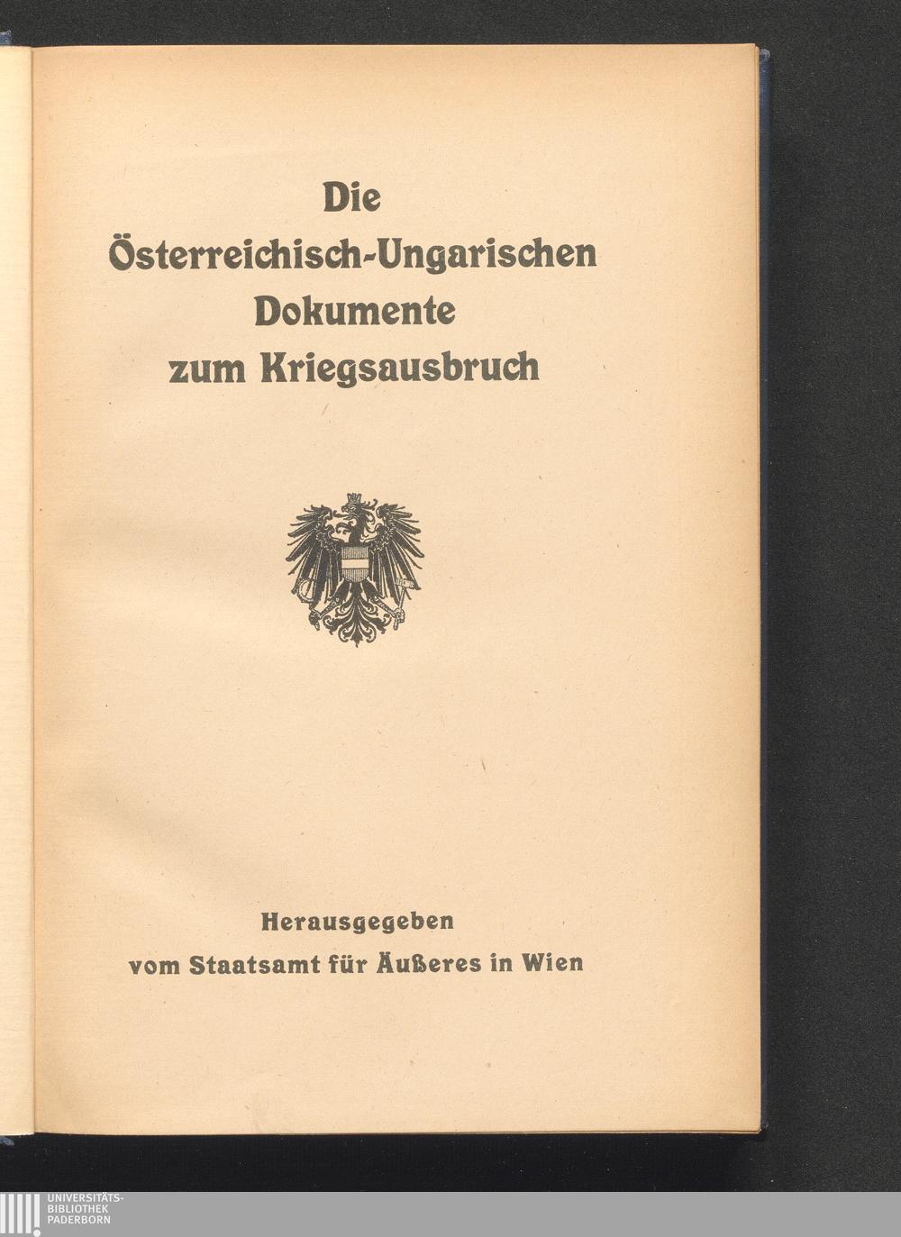 Diplomatische Aktenstücke zur Vorgeschichte des Krieges 1914 / hrsg. vom Staatsamt für Äußeres in Wien