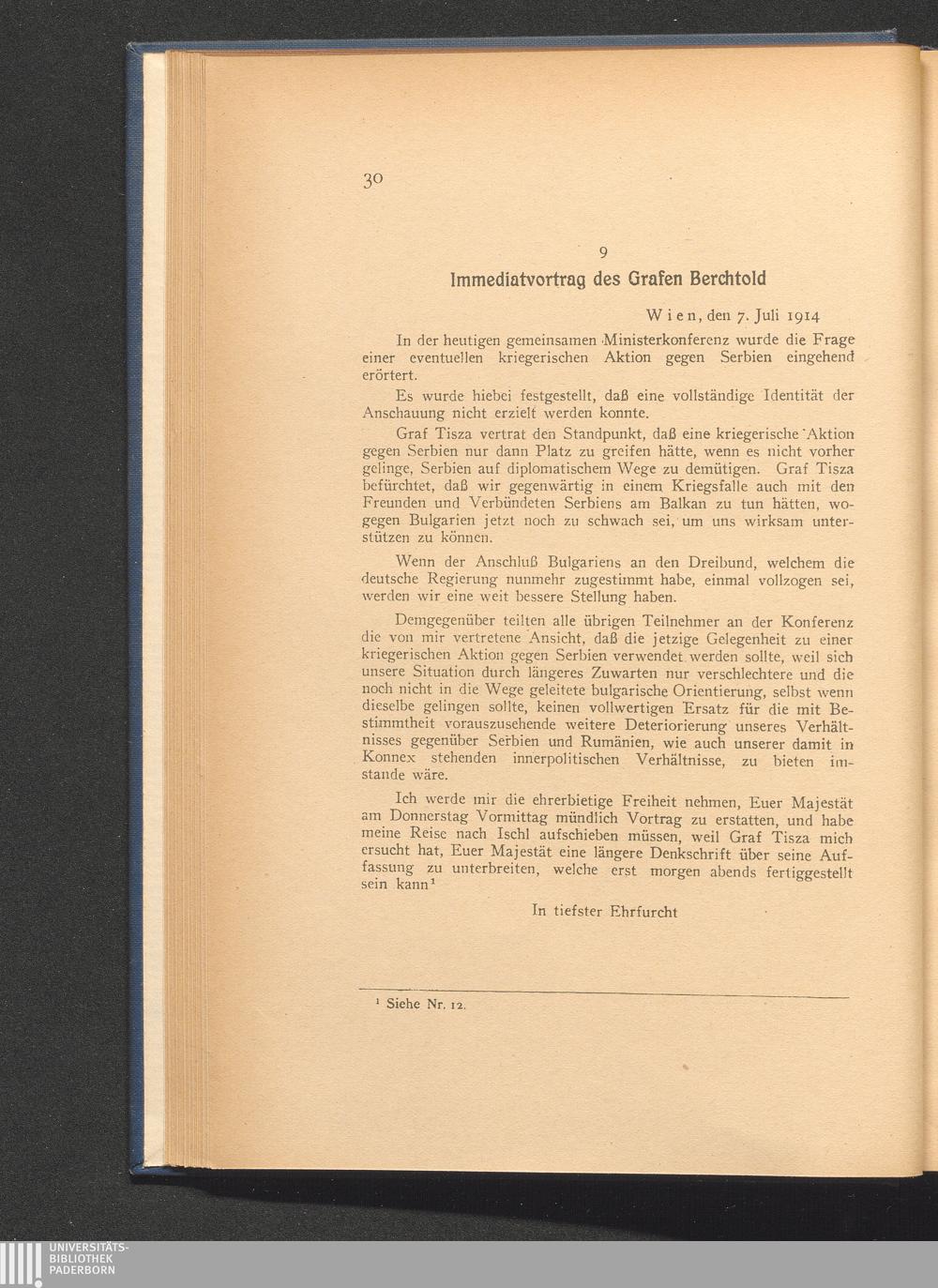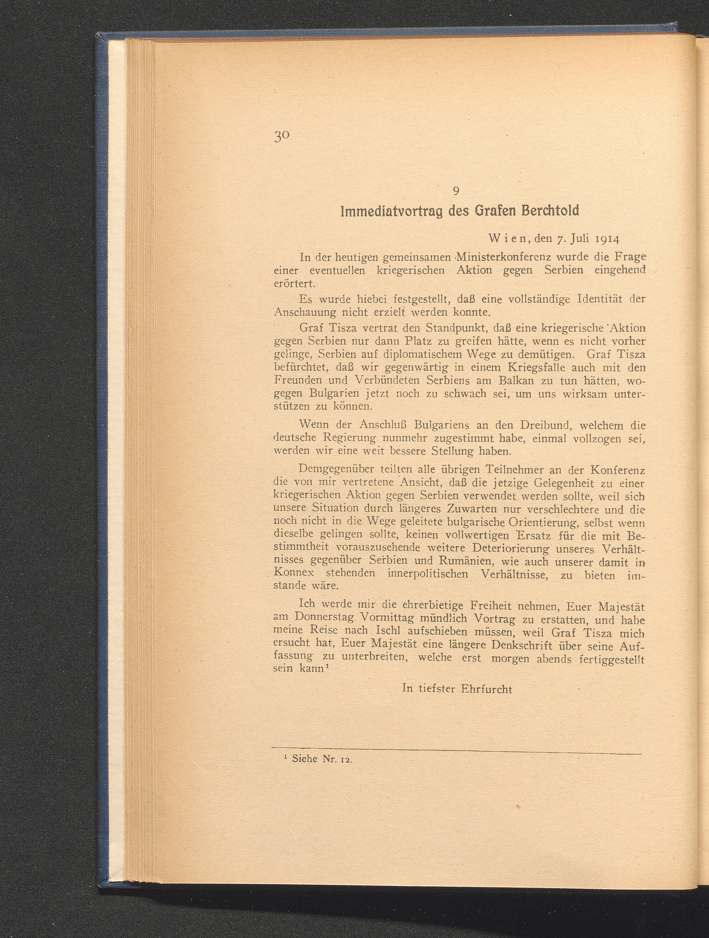 9. Wien, den 7. Juli 1914. Immediatvortrag des Grafen Berchtold.