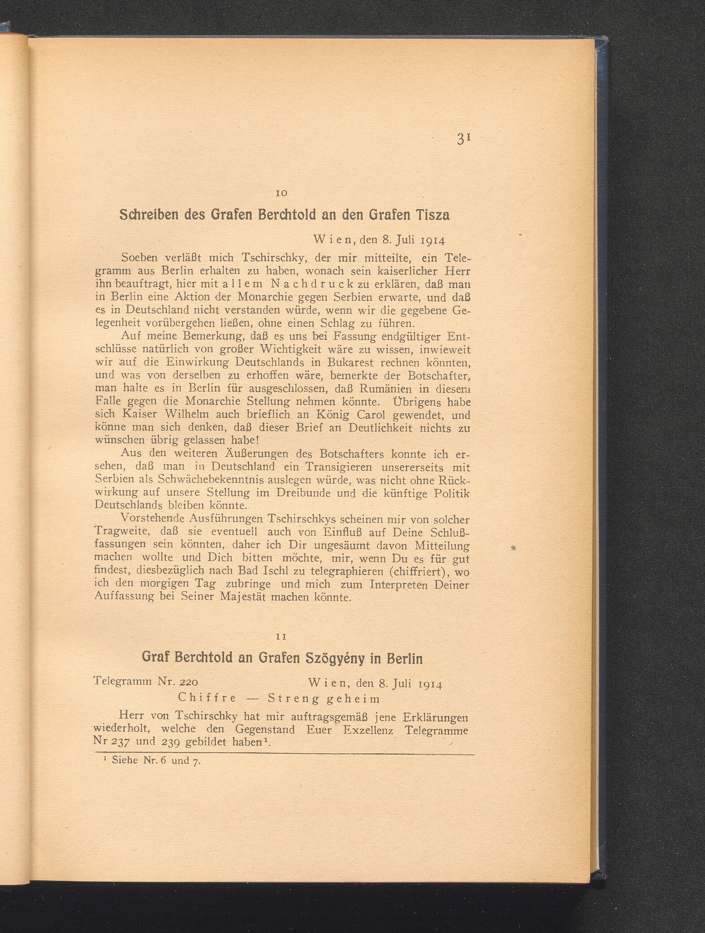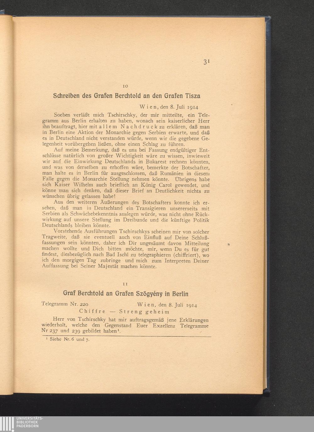 11. Wien, den 8. Juli 1914. Graf Berchtold an Grafen Szögyény in Berlin.