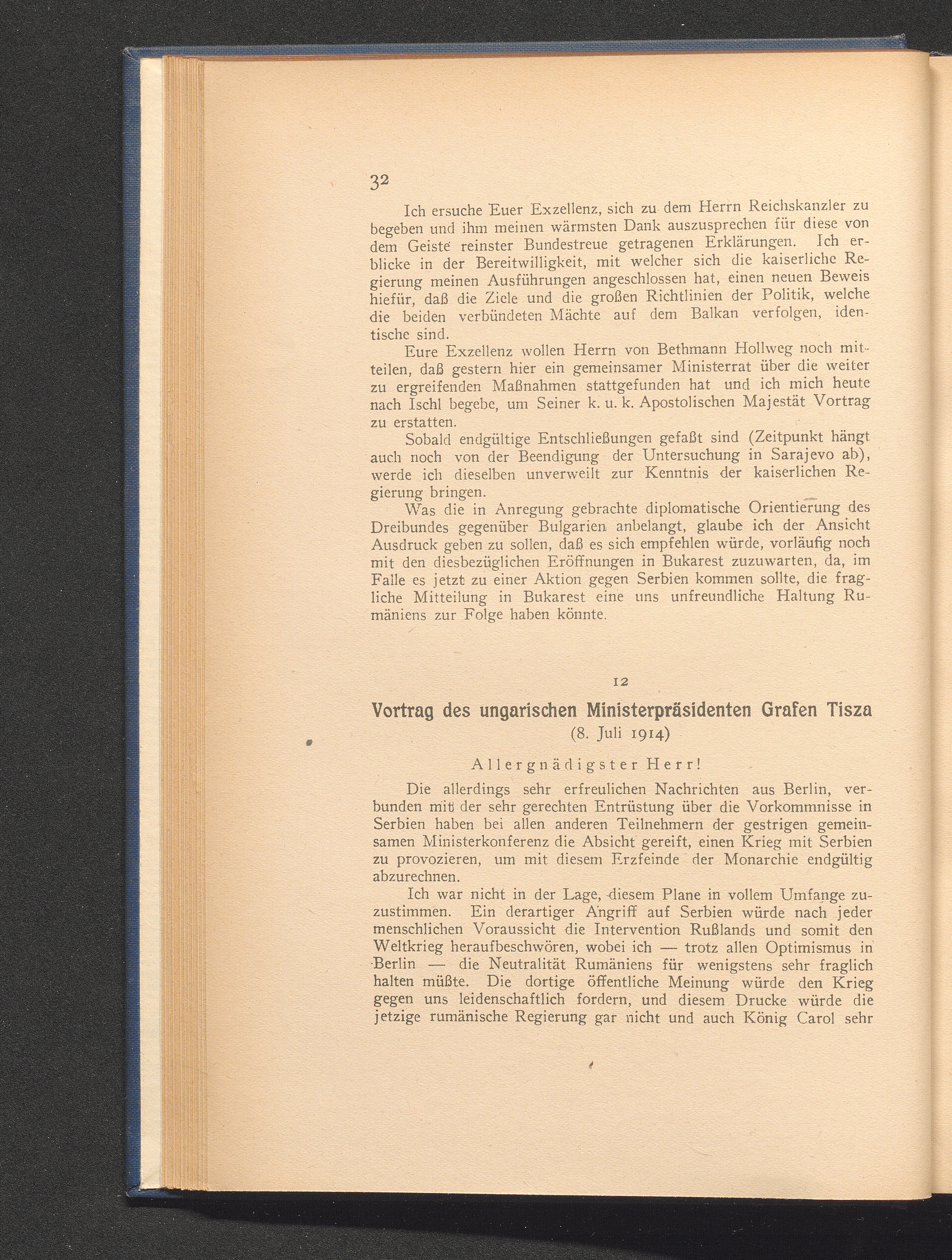 12. Budapest, den 8. Juli 1914. Vortrag des ungarischen Ministerpräsidenten Grafen[...]