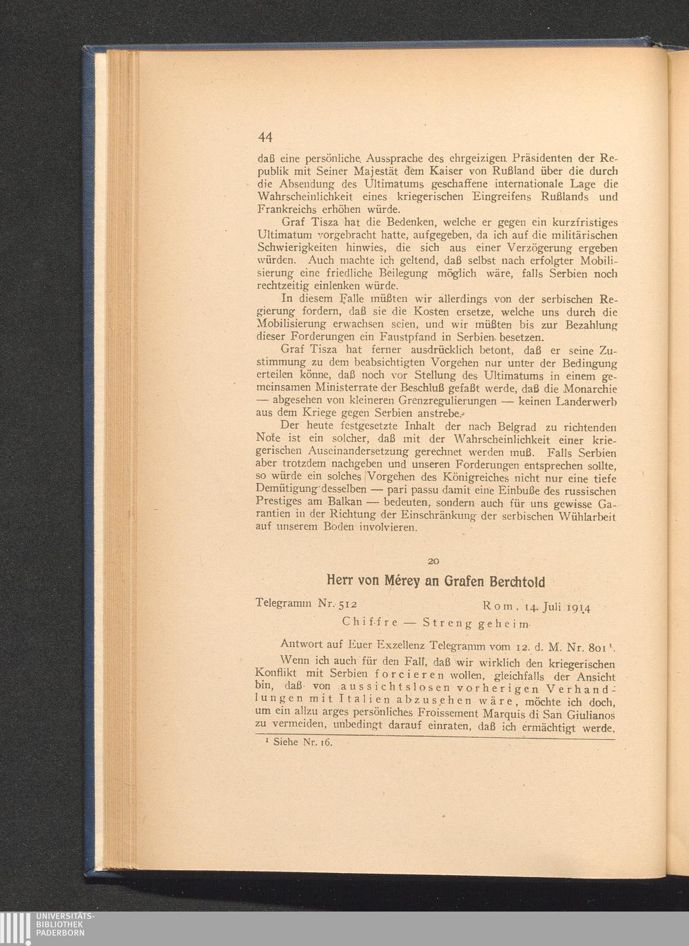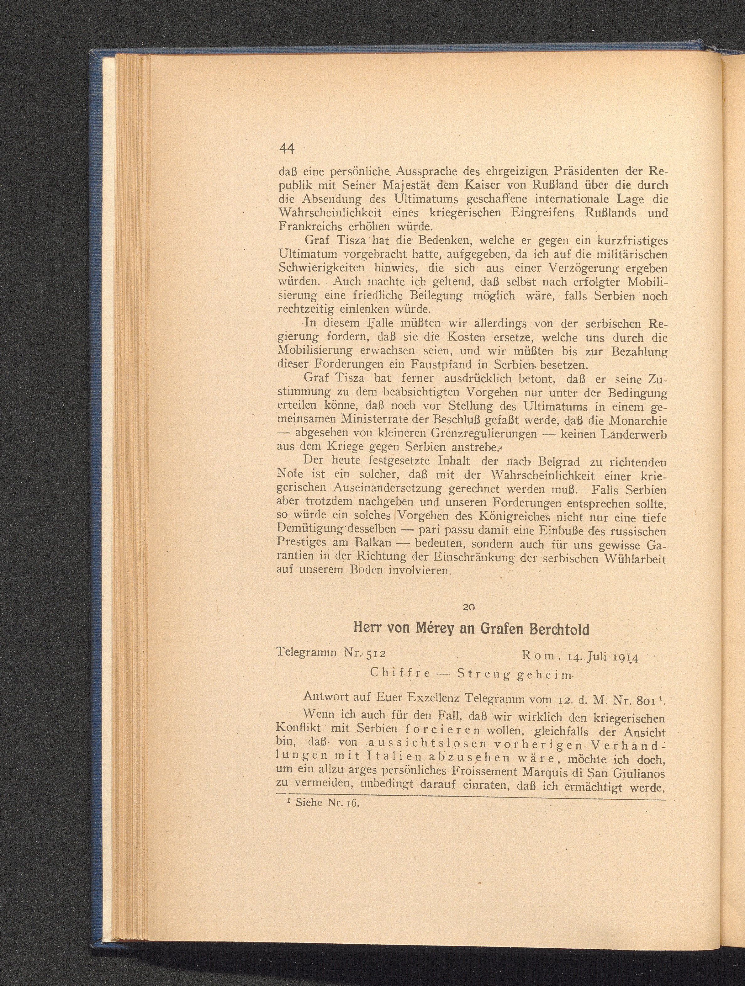 20. Rom, den 14. Juli 1914. Herr von Mérey an Grafen Berchtold.