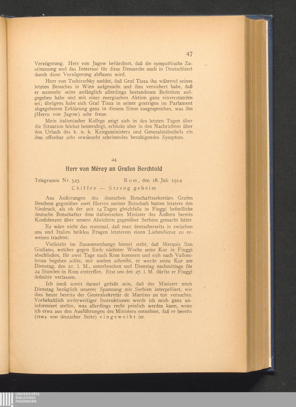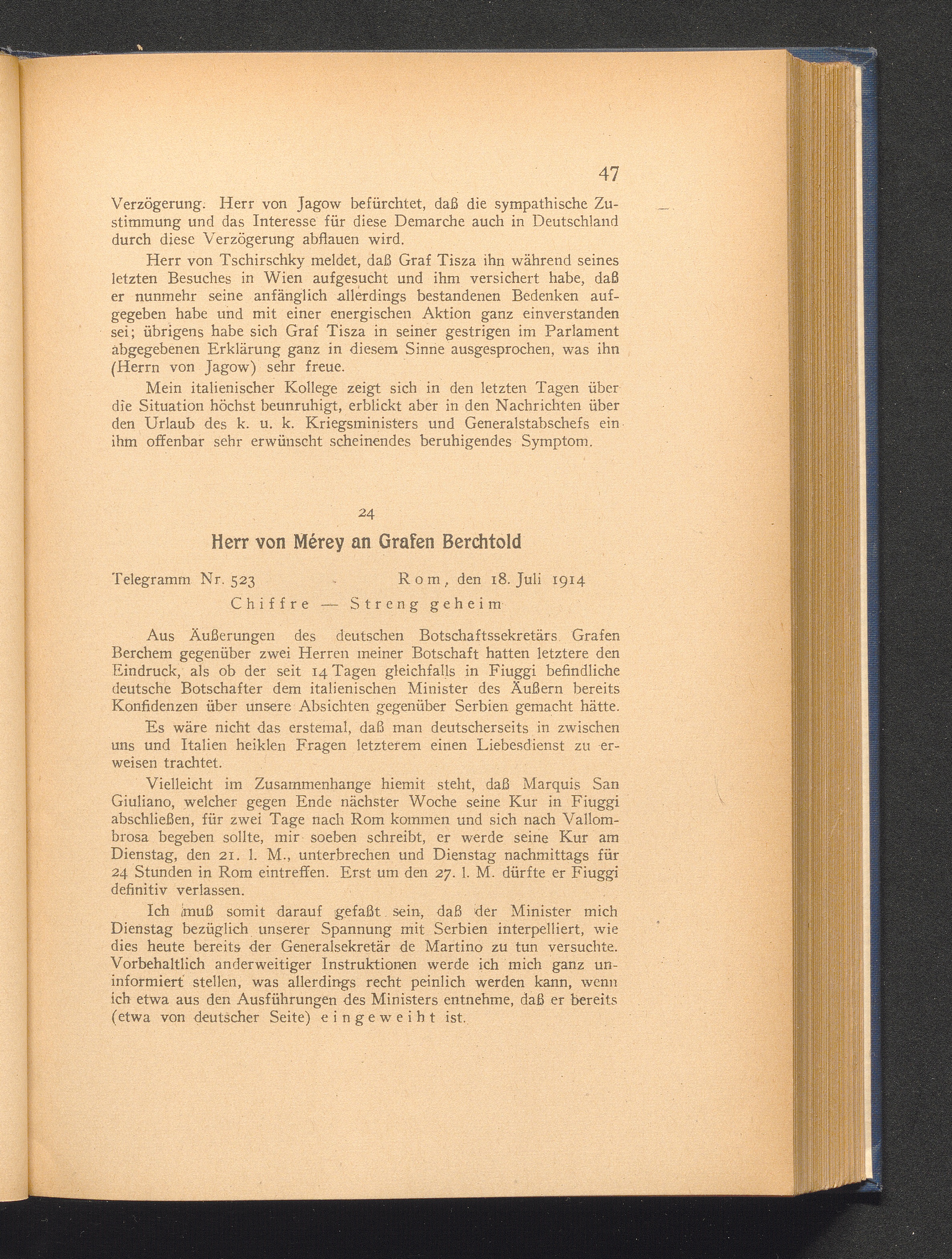 24. Rom, den 18. Juli 1914. Herr von Mérey an Grafen Berchtold.